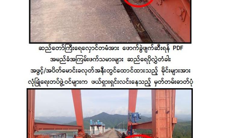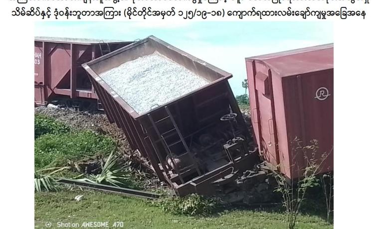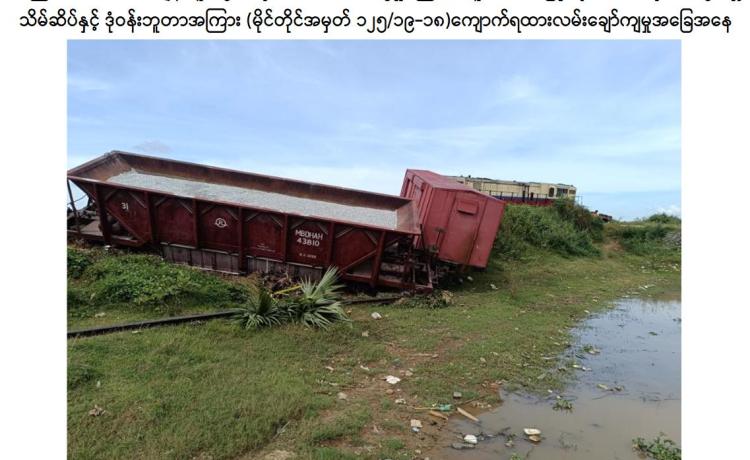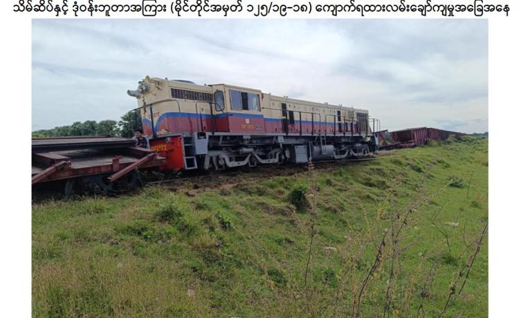 နိုင်ငံတော်တည်ငြိမ်အေးချမ်းမှုနှင့် ပြည်သူလူထုဘဝ အေးချမ်းသာယာ၍ လူမှုစီးပွားဘဝ ဖွံ့ဖြိုးတိုးတက်မှုတို့ကို မလိုလားသည့် နိုင်ငံရေးအစွန်းရောက် အကြမ်းဖက်အဖွဲ့များသည် ပြည်သူလူထု၏ လမ်းပန်းဆက်သွယ်ရေးနှင့် ကုန်စည်စီးဆင်းမှု အခက်အခဲများဖြစ်ပေါ်စေရန် ရည်ရွယ်၍ လမ်း၊ တံတားများအား မိုင်းထောင်ဖောက်ခွဲဖျက်ဆီးခြင်းများကို ဆင်ခြင်တုံ တရားမဲ့စွာ လုပ်ဆောင်လျက်ရှိကြရာ နိုဝင်ဘာ ၆ ရက် နံနက်ပိုင်းတွင် အကြမ်းဖက် သောင်းကျန်းသူများသည် သဲဖြူကုန်းမှ သီလဝါသို့ ပြေးဆွဲသည့် အမှတ်(၆၈၆)အစုန် ကျောက်ရထားအား ပဲခူး-မော်လမြိုင် ရထားလမ်းပိုင်းအတွင်း သိမ်ဆိပ်ဘူတာနှင့် ဒုံဝန်းဘူတာ အကြား၌ မိုင်းထောင်ဖောက်ခွဲခဲ့ကြောင်း မြန်
