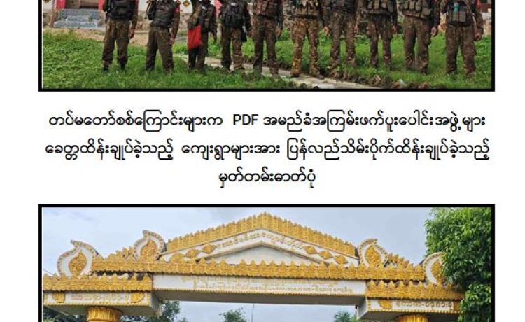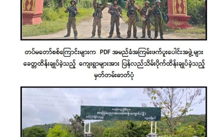 နိုင်ငံတော်ပျက်စီးရာ ပျက်စီးကြောင်းကို နည်းလမ်းမျိုးစုံဖြင့် အစဉ်တစိုက် ကြိုးပမ်းလုပ်ဆောင်နေသော CRPH၊ NUG အမည်ခံအကြမ်းဖက်အဖွဲ့အစည်းများသည် PDF အမည်ခံအကြမ်းဖက်သမားများကို မွေးထုတ်ပေးကာ အစိုးရ၏အုပ်ချုပ်ရေး ယန္တရားများ ပျက်စီးစေရန်နှင့် တိုင်းပြည်ဖွံ့ဖြိုးတိုးတက်မှုကို နှောင့်နှေးစေရန် ရည်ရွယ်၍ တိုင်းရင်းသားလက်နက်ကိုင်အဖွဲ့အချို့နှင့်ပူးပေါင်းကာ ၎င်းတို့အပေါ် အားပေးထောက်ခံမှုမရှိသည့် နိုင်ငံတော်မှ ပေးအပ်လာသော တာဝန်များကို ကျေပွန်စွာ ထမ်းဆောင်လျက်ရှိသော အစိုးရဝန်ထမ်းများ၊ ဆရာတော်၊ သံဃာတော် များနှင့် ဒေသခံပြည်သူများအား ခေါင်းစဉ်အမျိုးမျိုးတပ်၍ ဖမ်းဆီးနှိပ်စက် သတ်ဖြတ်ခြင်း၊ ပြည်သူများ