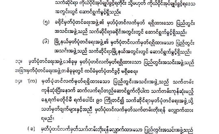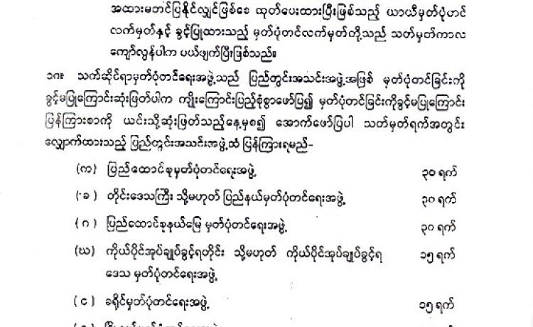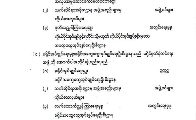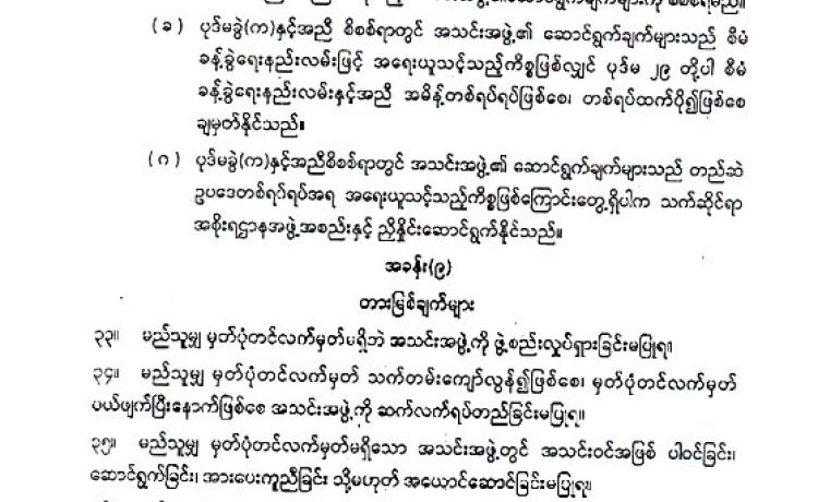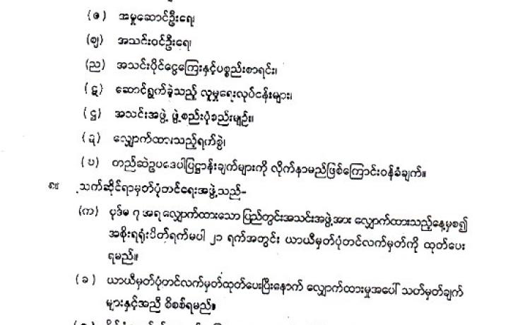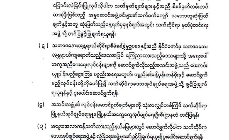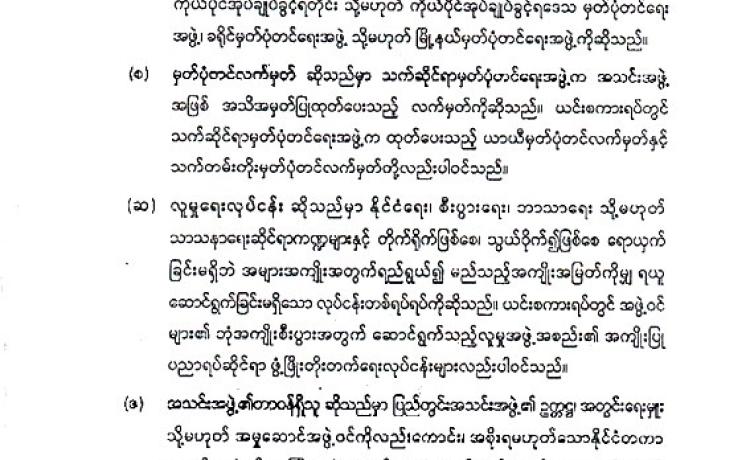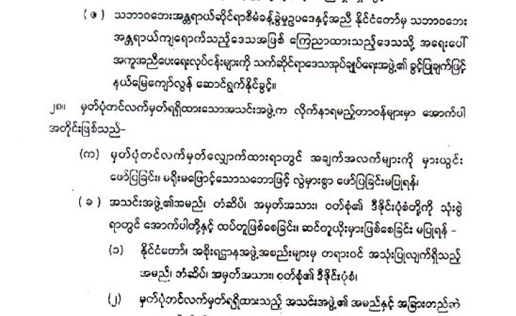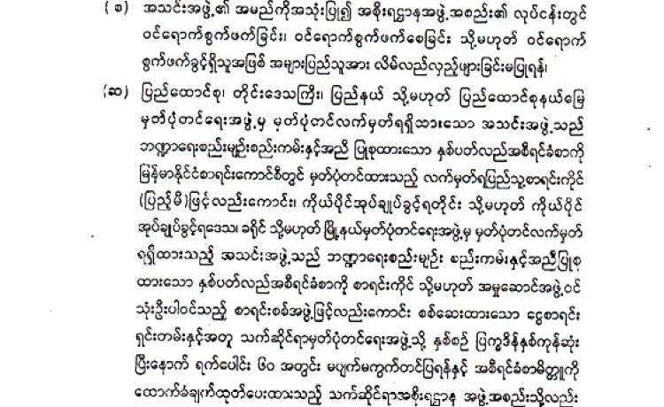 (ဃ) ပုဒ်မခွဲ (ဏ) တွင် ပါရှိသော “ပညာရေးအဆင့်အတန်း” ဆိုသည့် စကားရပ်အစား “အမျိုးသားပညာရေး အဆင့်မူဘောင်နှင့်အညီ ပညာရေး အဆင့်အတန်း” ဆိုသည့် စကားရပ်ဖြင့် အစားထိုးရမည်။