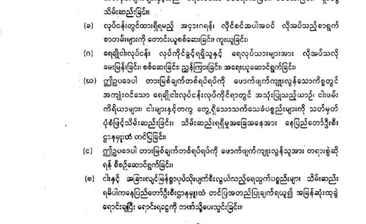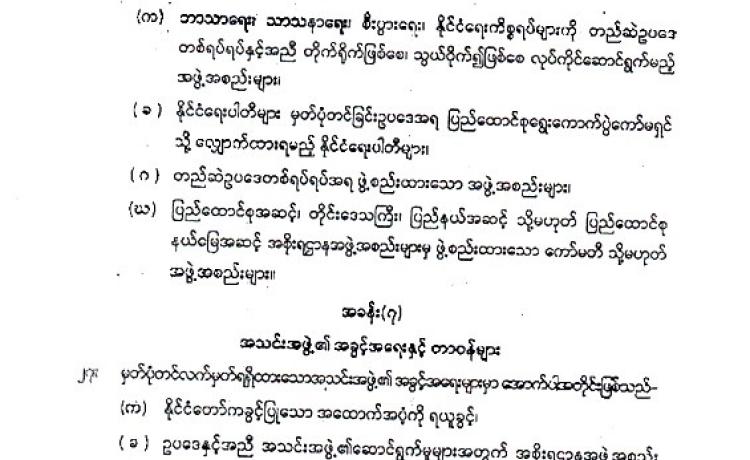 “၅၈။ ဝန်ကြီးဌာန၏ လုပ်ငန်းတာဝန်များမှာ အောက်ပါအတိုင်းဖြစ်သည်-