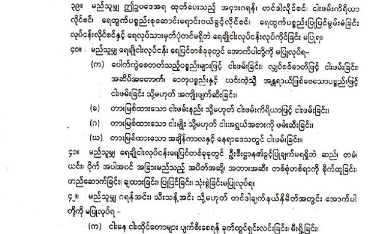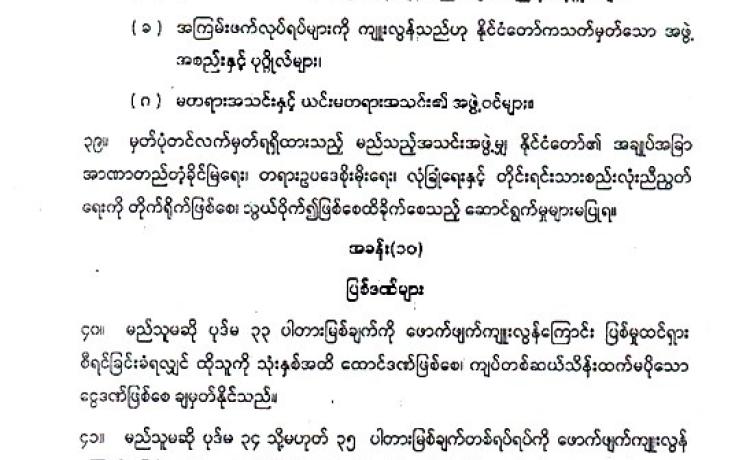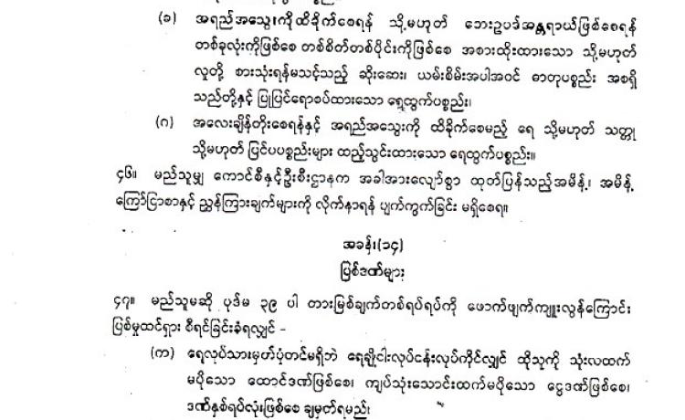 (ဂ) ပုဒ်မခွဲ (ယ) နှင့် (ဠ) တို့ကို အောက်ပါအတိုင်း အစားထိုးရမည်-