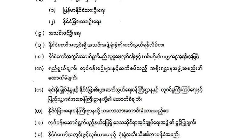(၁၀) ဝန်ကြီးဌာနမှ ကိုယ်စားလှယ် (၂)ဦး။