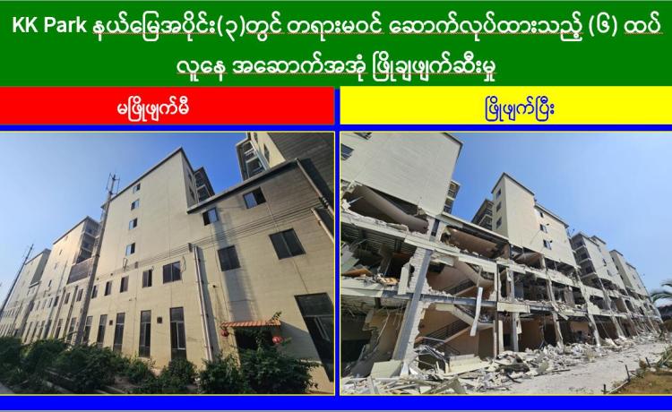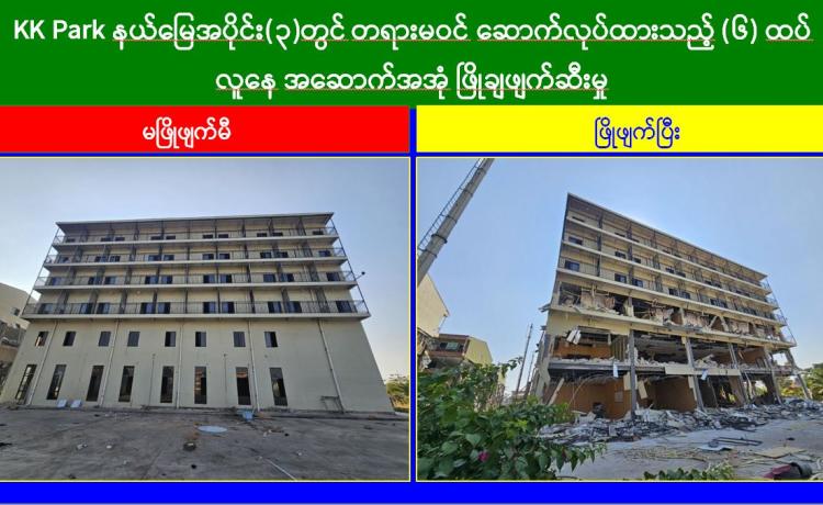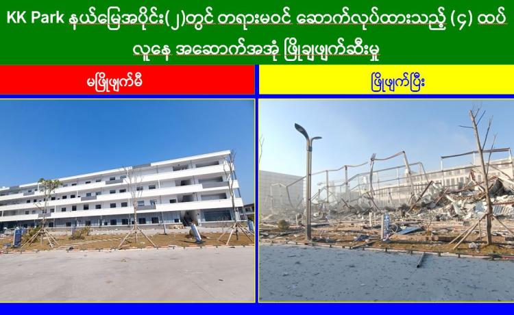 မြန်မာနိုင်ငံအစိုးရအနေဖြင့် အွန်လိုင်းလိမ်လည်လောင်းကစားမှုများ အများဆုံး အခြေချလုပ်ကိုင်လျက်ရှိကြသည့် ရွှေကုက္ကိုလ်နယ်မြေနှင့် KK Park နယ်မြေများရှိ တရားမဝင် အဆောက်အအုံများအတွင်း ဝင်ရောက်ရှင်းလင်း၍ အွန်လိုင်းလိမ်လည် လောင်းကစားမှုလုပ်ငန်းစဉ်များတွင် အသုံးပြုခဲ့သည့် သိမ်းဆည်းရမိပစ္စည်းများအား စနစ်တကျ ဖျက်ဆီးခြင်းနှင့် တရားမဝင်အဆောက်အအုံများအား စနစ်တကျဖြိုချ ဖျက်ဆီးခြင်းများကို အဖွဲ့စုံပါဝင်သည့် ပူးပေါင်းအဖွဲ့ဖြင့် ဆောင်ရွက်လျက်ရှိရာ ယနေ့တွင် လည်း KK Park နယ်မြေအတွင်းရှိ တရားမဝင်အဆောက်အအုံ ၆ လ