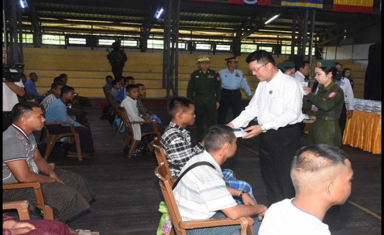 ပြည်သူ့စစ်မှုထမ်းသင်တန်း အမှတ်စဉ်(၁၈)သို့ တက်ရောက်ကြမည့် ဧရာဝတီ တိုင်းဒေသကြီးအတွင်းမှ နိုင်ငံ့သားကောင်းရတနာများအား ယနေ့နံနက်ပိုင်းတွင် တိုင်းဒေသ ကြီးဝန်ကြီးချုပ် ဦးတင်မောင်ဝင်း၊ အနောက်တောင်တိုင်းစစ်ဌာနချုပ် တိုင်မှူး ဗိုလ်ချုပ် စိုးကျော်ထက်နှင့် တာဝန်ရှိသူများက ပုသိမ်တပ်နယ် အားကစားခန်းမ၌ သွားရောက် တွေ့ဆုံသည်။