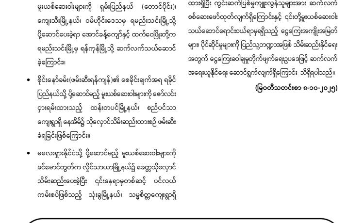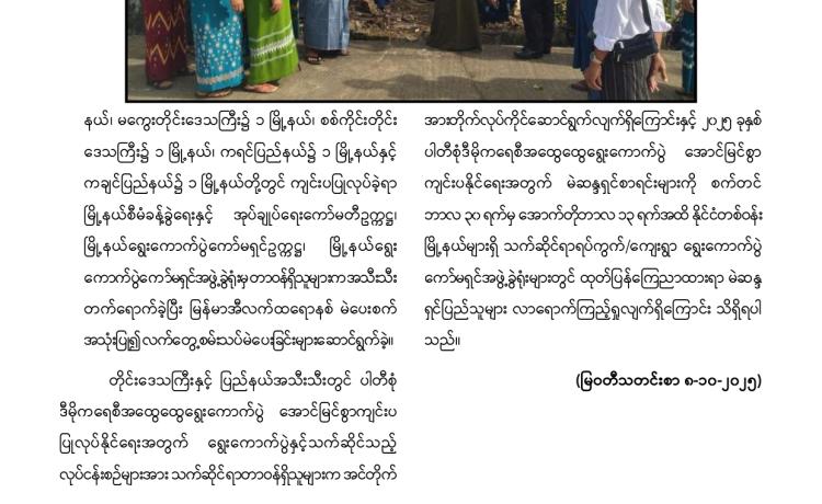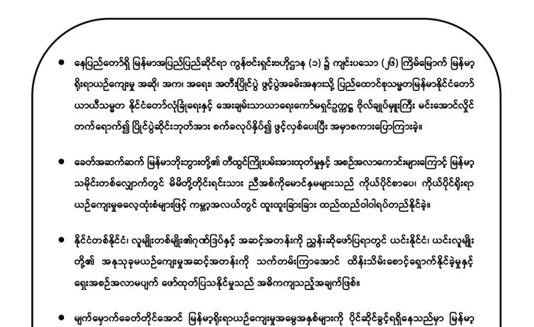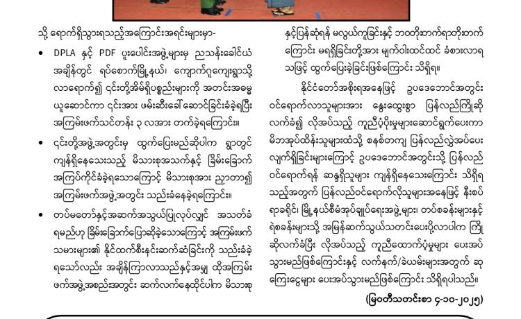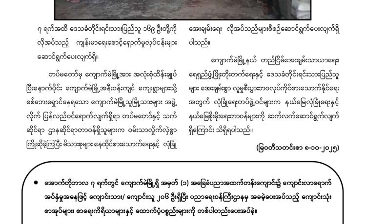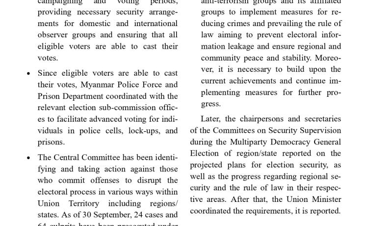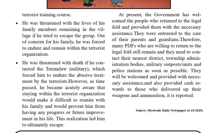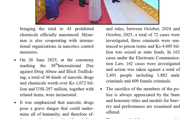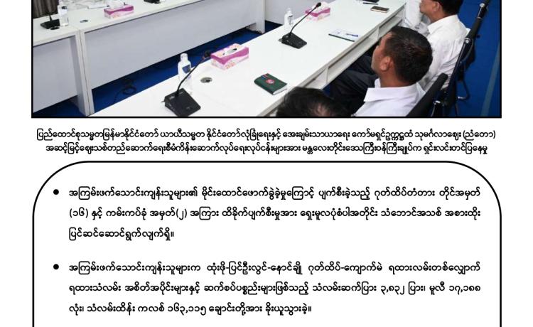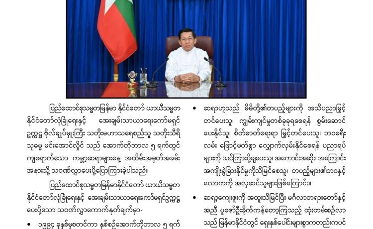 တပ်မတော်က ပြည်သူလူထု အေးချမ်းစွာနေထိုင်နိုင်ရေးအတွက် အကြမ်းဖက် ချေမှုန်းမှု စစ်ဆင်ရေး (Counter- Terrorism Operation)ကို တည်ငြိမ်အေးချမ်းမှုကို လိုလားသည့် ဒေသခံပြည်သူများနှင့် ပူးပေါင်းဆောင်ရွက်ခဲ့ရာ ရှမ်းပြည်နယ်(မြောက်ပိုင်း)ရှိ ကျောက်မဲမြို့ အား အလုံးစုံပြန်လည် ထိန်းချုပ်နိုင်ခဲ့ပြီး ဌာနဆိုင်ရာ တာဝန်ရှိသူများ၊ တပ်မတော်သားများ ပူးပေါင်း၍ ဒေသခံပြည်သူလူထု လုံခြုံရေးနှင့် လိုအပ်သည့် ကူညီ ထောက်ပံ့မှုများ ဆောင်ရွက် ပေးနိုင်ရေး၊ အစိုးရ၏ အုပ်ချုပ်မှုယန္တရားများဖြစ်သည့် ရုံးများ ပြန်လည်ဖွင့်လှစ်နိုင်ရေး၊ ကလေး သူငယ်များ ပညာသင်ကြားနိုင်ရေးအတွက် စာသင်ကျောင်းများ ပြန်လည်ဖွင့်လှစ်ပေးနိုင်ရေး၊ ပြည်သူလူထု