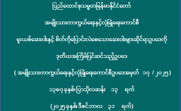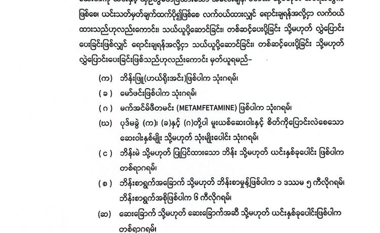 ပြည်ထောင်စုသမ္မတမြန်မာနိုင်ငံတော် အမျိုးသားကာကွယ်ရေးနှင့်လုံခြုံရေးကောင်စီ မူးယစ်ဆေးဝါးနှင့် စိတ်ကိုပြောင်းလဲစေသောဆေးဝါးများဆိုင်ရာဥပဒေကို ဒုတိယအကြိမ်ပြင်ဆင်သည့်ဥပဒေ ( အမျိုးသားကာကွယ်ရေးနှင့်လုံခြုံရေးကောင်စီဥပဒေအမှတ် ၁၇ / ၂၀၂၅ ) ၁၃၈၇ ခုနှစ်၊ ပြာသိုလဆန်း ၁၃ ရက် (၂၀၂၅ ခုနှစ်၊ ဒီဇင်ဘာလ ၃၁ ရက်)