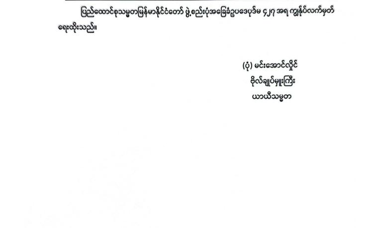 ၂၀၂၅ ခုနှစ်ကုန်ဆုံးလို့ ၂၀၂၆ ခုနှစ်ကို ကူးပြောင်းရောက်ရှိ လာတဲ့ နှစ်သစ်ကူးအခါသမယမှာ မြန်မာနိုင်ငံအတွင်း မှီတင်း နေထိုင်ကြတဲ့ မိဘပြည်သူ တိုင်းရင်းသားညီအစ်ကိုမောင်နှမများ အားလုံး မင်္ဂလာအပေါင်းနဲ့ ပြည့်စုံကြပါစေ၊ ကိုယ်စိတ်နှစ်ဖြာ ကျန်းမာချမ်းသာကြပြီး ကောင်းကျိုးလိုအင်ဆန္ဒများ ပြည့်ဝကြပါ စေလို့ ဦးစွာဆုမွန်ကောင်းတောင်းရင်း နှုတ်ခွန်း ဆက်သအပ်ပါတယ်။