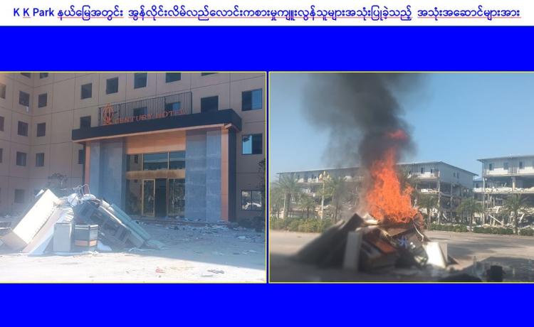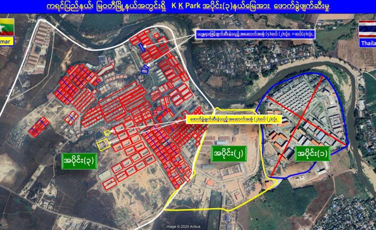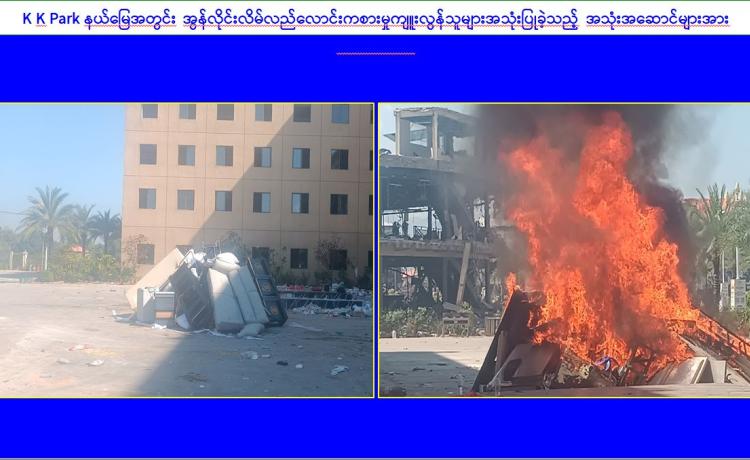 KK Park နယ်မြေအတွင်း အွန်လိုင်းလိမ်လည်လောင်းကစားမှု ကျူးလွန်ရာတွင် အသုံးပြုသည့် တရားမဝင်အဆောက်အအုံ ၅၂၅ လုံးကို စနစ်တကျဖြိုချဖျက်ဆီးပြီးစီး၊ အွန်လိုင်းလိမ်လည်လောင်း ကစားမှုကျူးလွန်ရာတွင် အသုံးပြုခဲ့သည့် ပစ္စည်းများအား စနစ်တကျ ဆက်လက်မီးရှို့ဖျက်ဆီး