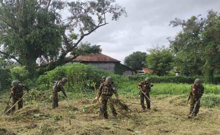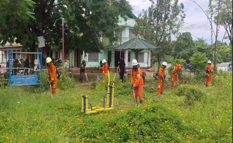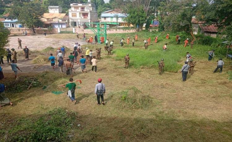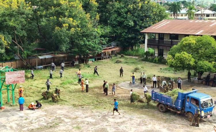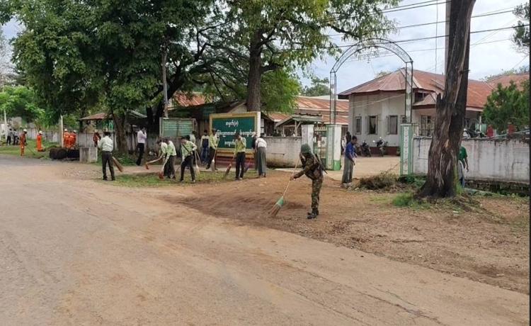 လုံခြုံရေးတပ်ဖွဲ့ဝင်များက ကျောက်မဲမြို့၊ အမှတ်(၁)အခြေခံပညာအထက်တန်း ကျောင်း၌ သန့်ရှင်းရေးလုပ်ငန်းများဆောင်ရွက်၊ ဒေသခံတိုင်းရင်းသားပြည်သူများ အတွက် ဆန်၊ ဆီ နှင့် စားသောက်ကုန်များထပ်မံရောက်ရှိ