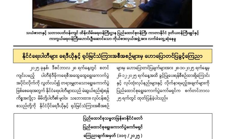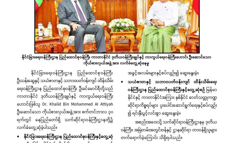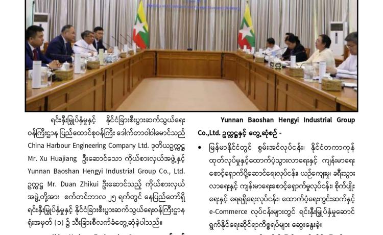 စက်မှုလုပ်ငန်းနှင့် စက်မှုဇုန်ဖွံ့ဖြိုးတိုးတက်ရေး ဗဟိုကော်မတီ အစည်းအဝေး (၁/၂၀၂၅)ကို ယနေ့မွန်းလွဲပိုင်းတွင်စက်မှုဝန်ကြီးဌာန အစည်းအဝေးခန်းမ၌ ကျင်းပရာ စက်မှုလုပ်ငန်းနှင့် စက်မှုဇုန်ဖွံ့ဖြိုးတိုးတက်ရေး ဗဟိုကော်မတီ ဥက္ကဋ္ဌ၊ နိုင်ငံတော် ဝန်ကြီးချုပ် ဦးညိုစော တက်ရောက်အမှာစကားပြောကြားသည်။
