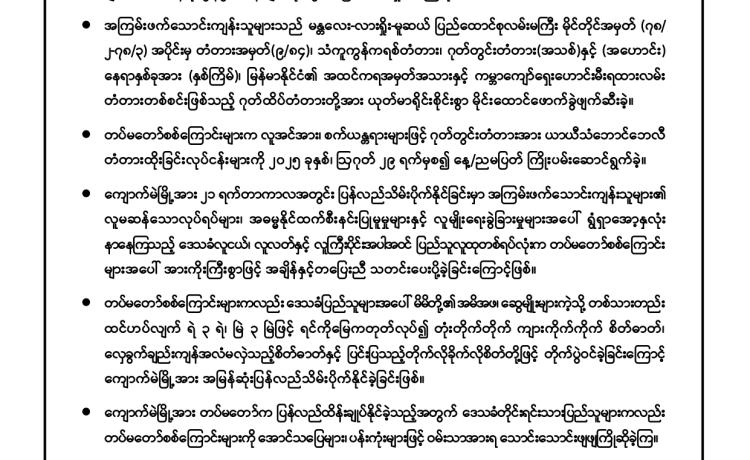 အကြမ်းဖက်အုပ်စုအဖြစ် ကြေညာထားသော CRPH၊ NUG နှင့် ၎င်းတို့၏ လက်ဝေခံများ၏ လှုံ့ဆော်၊ ဝါဒဖြန့်ခြင်းများအား လိုက်ပါလုပ်ဆောင်ခြင်း၊ အားပေးကူညီခြင်းများ ပြုလုပ်ခဲ့သူများအား ဖော်ထုတ်အရေးယူ