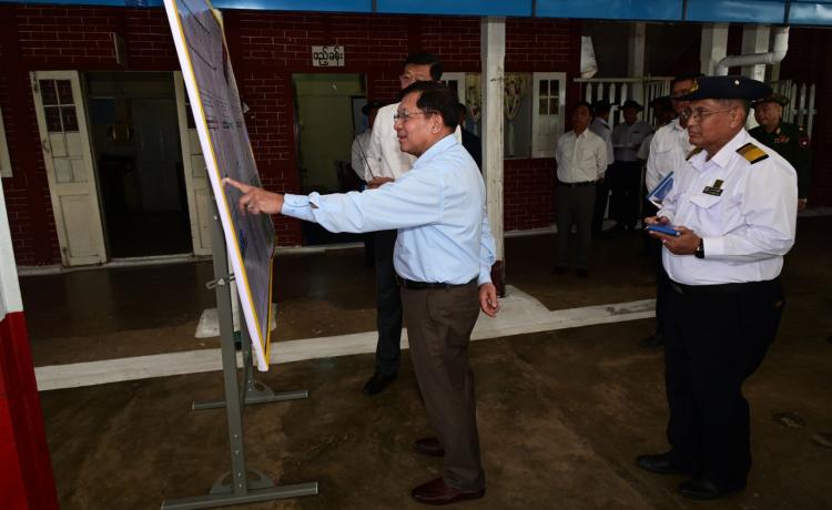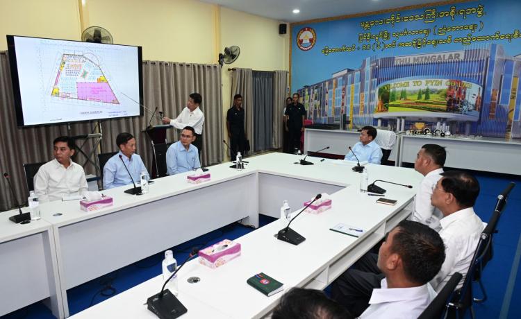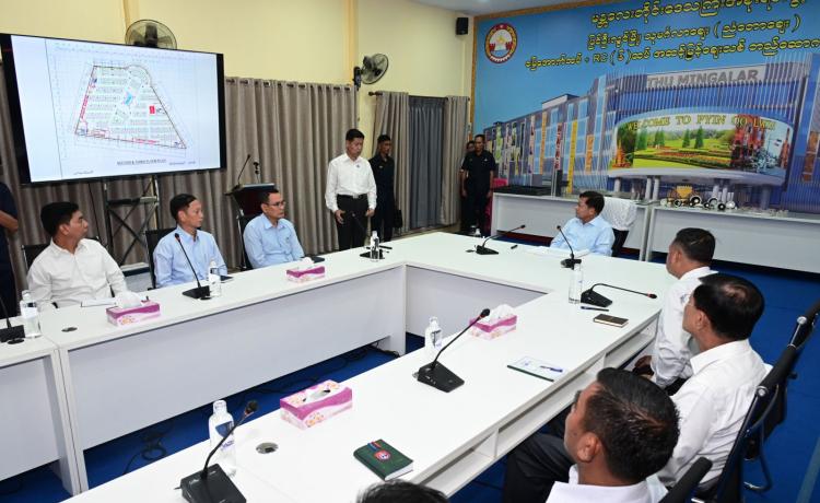 ပြည်ထောင်စုသမ္မတမြန်မာနိုင်ငံတော် ယာယီသမ္မတ နိုင်ငံတော်လုံခြုံရေးနှင့် အေးချမ်း သာယာရေးကော်မရှင်ဥက္ကဋ္ဌ ဗိုလ်ချုပ်မှူးကြီး မင်းအောင်လှိုင် ပြင်ဦးလွင်ဘူတာကြီးနှင့် သုမင်္ဂလာဈေး(ညံတောဈေး) ၆ ထပ် အဆင့်မြင့် ဈေးသစ်တည်ဆောက်ရေးစီမံကိန်းသို့ သွားရောက်ကြည့်ရှုစစ်ဆေး