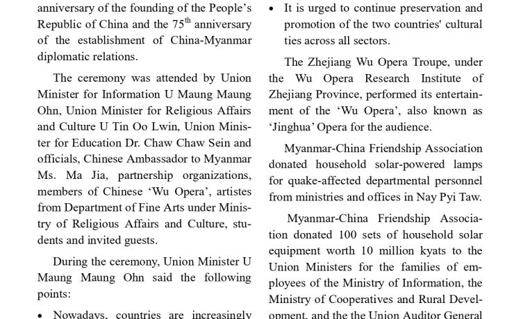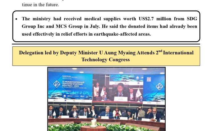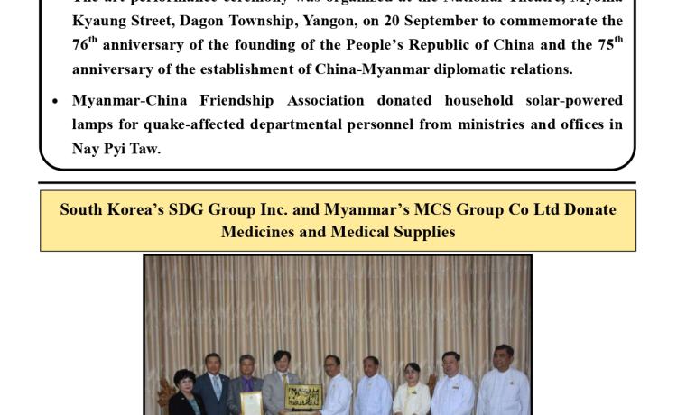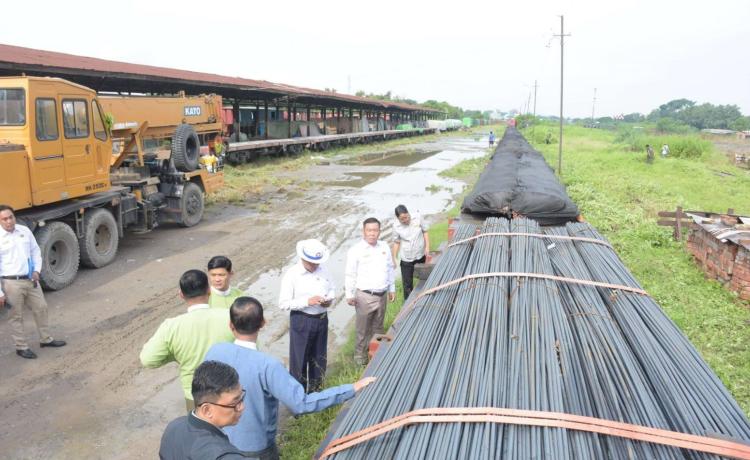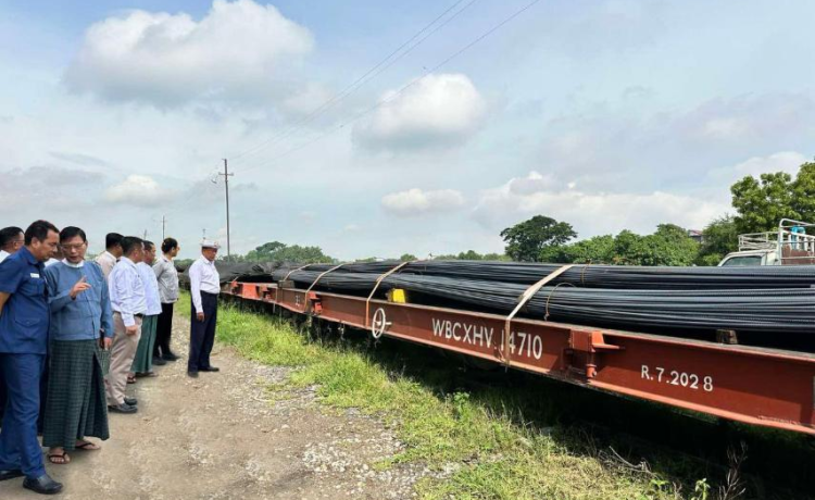 ငလျင်ဘေးဒဏ်ခံခဲ့ရသောဒေသများရှိ ပြန်လည်ထူထောင်ရေးနှင့် တည်ဆောက်ရေး လုပ်ငန်းများ အတွက် လိုအပ်လျက်ရှိသော HRB 500 အမျိုးအစား သံချောင်းလုံးများအား ရန်ကုန်မြို့မှ မန္တလေးမြို့သို့ အထူးကုန်ရထားဖြင့် ပို့ဆောင်ရောက်ရှိလာခဲ့ကြောင်း သိရှိရသည်။