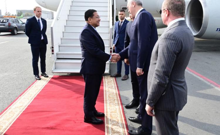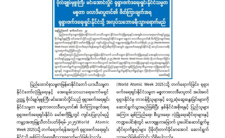 ပြည်ထောင်စုသမ္မတမြန်မာနိုင်ငံတော် ယာယီသမ္မတ နိုင်ငံတော်လုံခြုံရေးနှင့် အေးချမ်းသာယာရေးကော်မရှင်ဥက္ကဋ္ဌ ဗိုလ်ချုပ်မှူးကြီး မင်းအောင်လှိုင် ဦးဆောင်သည့် မြန်မာအဆင့်မြင့်ကိုယ်စားလှယ်အဖွဲ့ ကမ္ဘာ့အဏုမြူသတင်းပတ်ဖိုရမ် (World Atomic Week)သို့ တက်ရောက်ရန် ရုရှားဖက်ဒရေးရှင်းနိုင်ငံသို့ ရောက်ရှိ