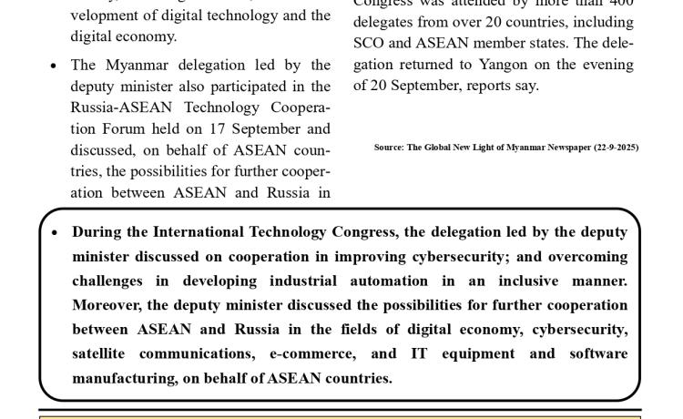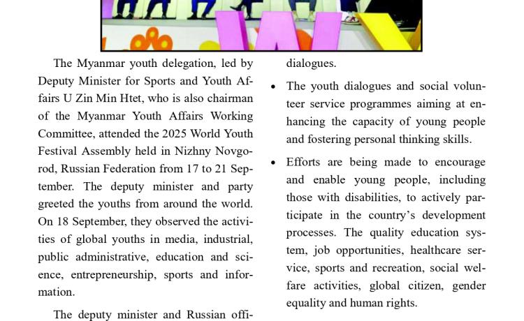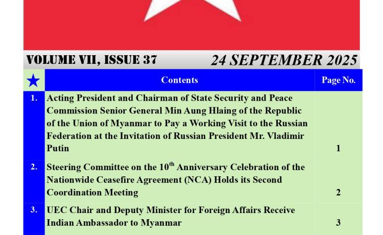ပြည်ထောင်စုသမ္မတမြန်မာနိုင်ငံတော် ယာယီသမ္မတ နိုင်ငံတော်လုံခြုံရေးနှင့် အေးချမ်းသာယာရေးကော်မရှင်ဥက္ကဋ္ဌ ဗိုလ်ချုပ်မှူးကြီး မင်းအောင်လှိုင် ရုရှားဖက်ဒရေးရှင်းနိုင်ငံသမ္မတ မစ္စတာ ဗလာဒီမာ ပူတင်၏ ဖိတ်ကြားချက်အရ ရုရှားဖက်ဒရေးရှင်းနိုင်ငံသို့ အလုပ်သဘောခရီးသွားရောက်မည် နေပြည်တော်၊ စက်တင်ဘာ - ၂၃