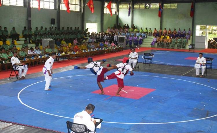 ၂၀၂၅ခုနှစ်၊ (၃၂)ကြိမ်မြောက် တပ်မတော်ကာကွယ်ရေးဦးစီးချုပ်ဒိုင်း တပ်မတော် (ကြည်း၊ရေ၊လေ) (အမျိုးသား/အမျိုးသမီး) မြန်မာ့သိုင်းပြိုင်ပွဲ ဖွင့်ပွဲကို ယနေ့ မွန်းလွဲပိုင်း တွင် ရန်ကုန်တိုင်းစစ်ဌာနချုပ် နဝဒေးအားကစားရုံ၌ ပြုလုပ်ရာ တပ်မတော်ကာကွယ် ရေးဦးစီးချုပ် ကိုယ်စား တိုင်းမှူး ဗိုလ်ချုပ် ပြည့်စုံလင်း နှင့်တာဝန်ရှိသူများ၊ အရာရှိ၊ စစ်သည်၊ မိသားစုများ၊ ဒိုင်အဖွဲ့ဝင်များနှင့် ပြိုင်ပွဲဝင်အားကစားသမားများ တက်ရောက် ကြသည်။