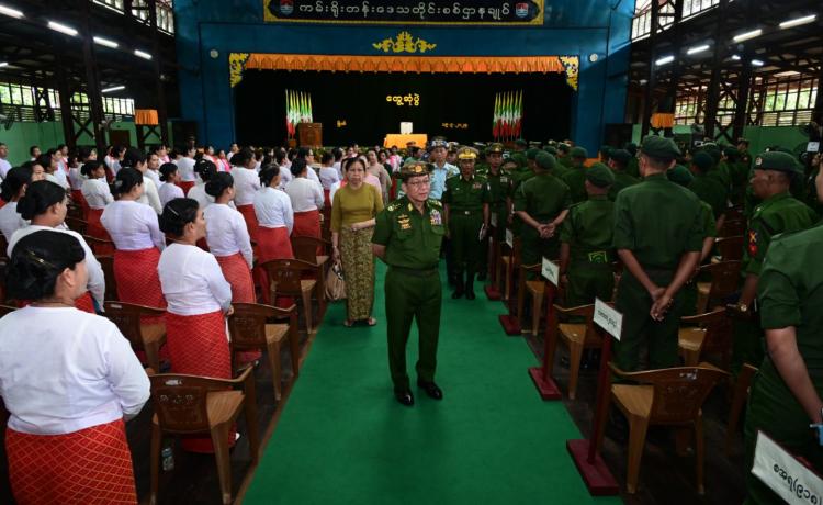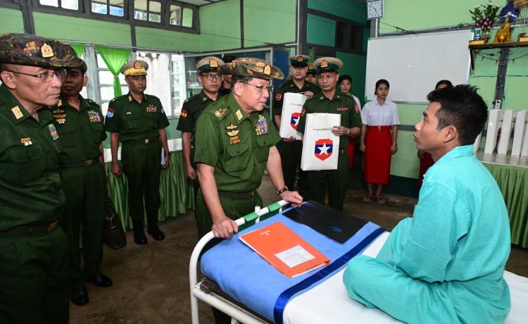 နိုင်ငံတော်လုံခြုံရေးနှင့် အေးချမ်းသာယာရေးကော်မရှင် ဥက္ကဋ္ဌ တပ်မတော်ကာကွယ်ရေးဦးစီးချုပ် ဗိုလ်ချုပ်မှူးကြီး မင်းအောင်လှိုင် ကမ်းရိုးတန်းဒေသတိုင်းစစ်ဌာနချုပ်နယ်မြေအတွင်း နယ်မြေလုံခြုံရေးဆောင်ရွက် ထားရှိမှု အခြေအနေများအားစစ်ဆေး၊ တပ်နယ်မိသားစုများအားတွေ့ဆုံအမှာစကားပြောကြား