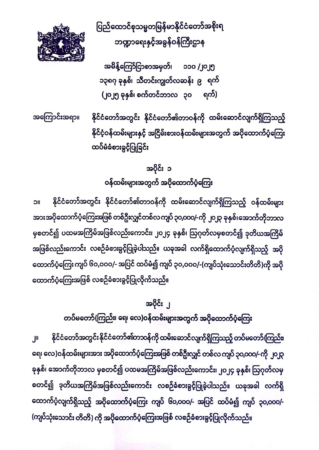 ပြည်ထောင်စုမြန်မာနိုင်ငံတော်အစိုးရ ဘဏ္ဍာ...