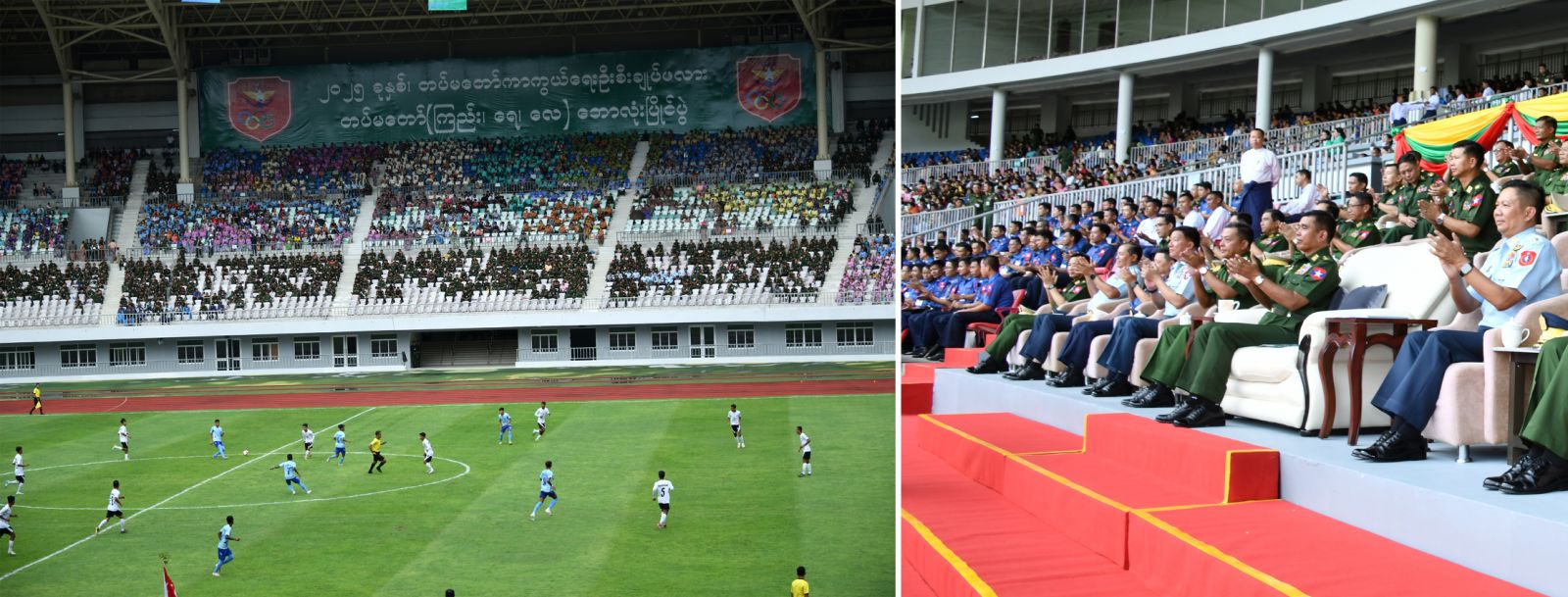 ၂၀၂၅ ခုနှစ်၊ တပ်မတော်ကာကွယ်ရေးဦးစီးချုပ်ဖလား တပ်မတော်(ကြည်း၊ရေ၊ လေ)ဘောလုံးပြိုင်ပွဲ ဖွင့်ပွဲအခမ်းအနားကို ယနေ့ညနေပိုင်းတွင် နေပြည်တော်ရှိ ဇေယျာသီရိတပ်မတော်အားကစားကွင်း၌ ကျင်းပပြုလုပ်ခဲ့ရာ နိုင်ငံတော်လုံခြုံရေးနှင့် အေးချမ်းသာယာရေးကော်မရှင်ဥက္ကဋ္ဌ တပ်မတော်ကာကွယ်ရေးဦးစီးချုပ် ဗိုလ်ချုပ်မှူးကြီး မင်းအောင်လှိုင် ကိုယ်စား တပ်မတော်အားကစားနှင့် ကာယပညာအုပ်ချုပ်ရေးအဖွဲ့ ဥက္ကဋ္ဌ စစ်ရေးချုပ် ဒုတိယဗိုလ်ချုပ်ကြီး ဖုန်းမြတ် တက်ရောက်သည်။