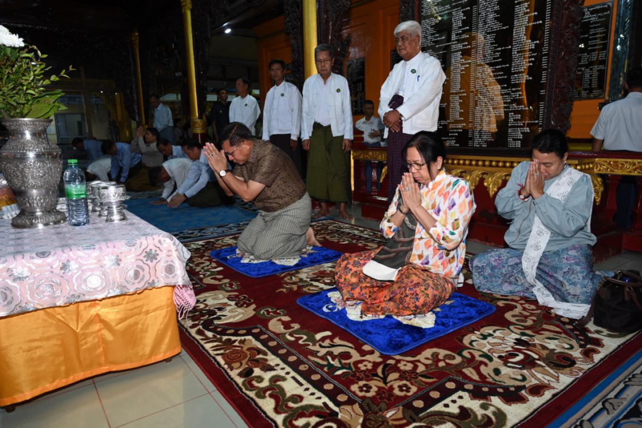 ထို့နောက် နိုင်ငံတော်ယာယီသမ္မတ နိုင်ငံတော်လုံခြုံရေးနှင့် အေးချမ်း သာယာ ရေးကော်မရှင်ဥက္ကဋ္ဌနှင့်အဖွဲ့ဝင်များသည် စေတီတော်ကြီးအားလက်ယာရစ်လှည့်လည် ဖူးမြော်ကြည်ညိုကြပြီး နှစ်ပေါင်း ၂၄၀ သက်တမ်းရှိ ရှေးဟောင်းသမိုင်းဝင် သမုတ် သိမ်တော်အတွင်းရှိ ရှေးဟောင်းဗုဒ္ဓရုပ်ပွားတော်များအား ဖူးမြော်ကြည်ညို၍ စေတီ တော်ကြီးနှင့် ရှေးဟောင်းသမိုင်းဝင် သမုတ်သိမ်တော်ကြီး ရေရှည်တည်တံ့ခိုင်မြဲရေး အတွက် လိုအပ်သည်များ လမ်းညွှန်မှာကြားသည်။