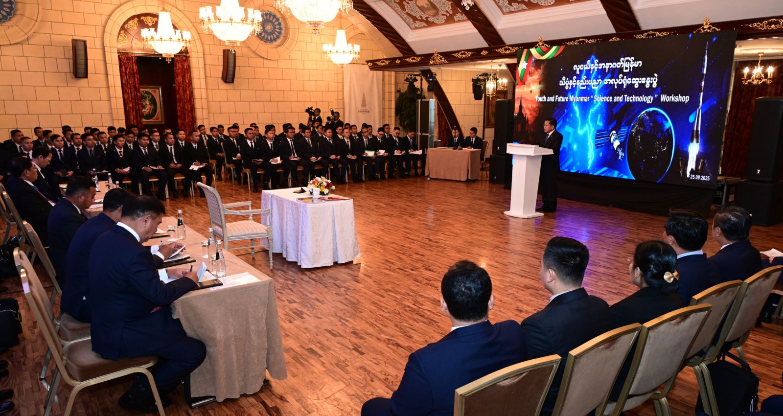 “လူငယ်နှင့်အနာဂတ်မြန်မာ-သိပ္ပံနှင့်နည်းပညာ” ခေါင်းစဉ်ဖြင့် သိပ္ပံပညာရပ် ဆိုင်ရာ အလုပ်ရုံဆွေးနွေးပွဲကို ယနေ့နံနက်ပိုင်းတွင် ရုရှားဖက်ဒရေးရှင်းနိုင်ငံ၊ မော်စကို မြို့၊ RADISSON COLLECTION ဟိုတယ်၊ Conference Hall ၌ ကျင်းပပြုလုပ်ရာ ပြည် ထောင်စုသမ္မတ မြန်မာနိုင်ငံတော်ယာယီသမ္မတ နိုင်ငံတော်လုံခြုံရေးနှင့် အေးချမ်း သာယာရေးကော်မရှင်ဥက္ကဋ္ဌ ဗိုလ်ချုပ်မှူးကြီး မင်းအောင်လှိုင် တက်ရောက် အမှာ စကားပြောကြားသည်။