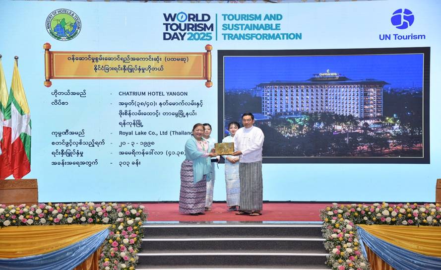 ထို့နောက် နိုင်ငံတော်ဝန်ကြီးချုပ် ဦးညိုစော က ဝန်ဆောင်မှုစွမ်းဆောင်ရည် အကောင်းဆုံးဆုရရှိသော နိုင်ငံခြားရင်းနှီးမြှုပ်နှံမှု ဟိုတယ်များနှင့် ဖက်စပ်ဟိုတယ်များ၊ ၂၀၂၅ ခုနှစ်၊ ကမ္ဘာ့ခရီးသွားလုပ်ငန်းနေ့အထိမ်းအမှတ် စာတမ်းဖတ်ပြိုင်ပွဲနှင့် ရောင်စုံ ဓာတ်ပုံပြိုင်ပွဲများတွင် ဆုရရှိကြသူများအား ဂုဏ်ပြုဆုနှင့် ဂုဏ်ပြုမှတ်တမ်းလွှာများ ပေးအပ်ချီးမြှင့်သည်။