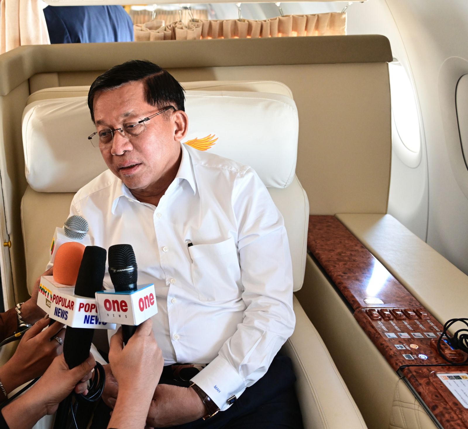 ထိုသို့အထူးလေယာဉ်ဖြင့် ပြန်လည်ထွက်ခွာလာစဉ် နိုင်ငံတော်ယာယီသမ္မတ နိုင်ငံတော် လုံခြုံရေးနှင့်အေးချမ်းသာယာရေးကော်မရှင် ဥက္ကဋ္ဌသည် အထူးလေယာဉ် ပေါ်၌ မီဒီယာများ၏ သိရှိလိုသည့်မေးမြန်းမှုများကို လက်ခံဖြေကြားခဲ့ပြီး မေးမြန်း ဖြေကြားမှု အပြည့်အစုံကို ယခုလိုပဲ ဖော်ပြလိုက်ရပါတယ် -