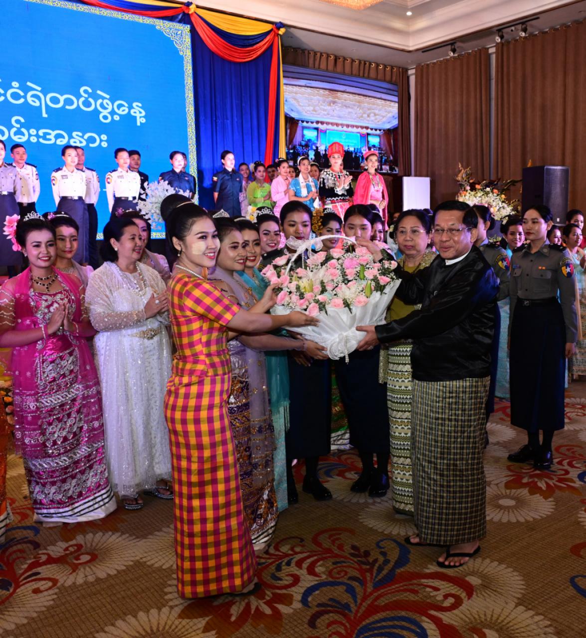 (၆၁)နှစ်မြောက် မြန်မာနိုင်ငံရဲတပ်ဖွဲ့နေ့ အထိမ်းအမှတ်ဂုဏ်ပြုညစာစားပွဲ အခမ်း အနားကို ယနေ့ညပိုင်းတွင် နေပြည်တော်ရှိ မင်္ဂလာသီရိဟိုတယ်၌ ကျင်းပရာ ပြည်ထောင်စုသမ္မတမြန်မာနိုင်ငံတော် ယာယီသမ္မတ နိုင်ငံတော်လုံခြုံရေးနှင့် အေးချမ်း သာယာရေးကော်မရှင် ဥက္ကဋ္ဌ ဗိုလ်ချုပ်မှူးကြီး မင်းအောင်လှိုင် တက်ရောက်ချီးမြှင့်သည်။