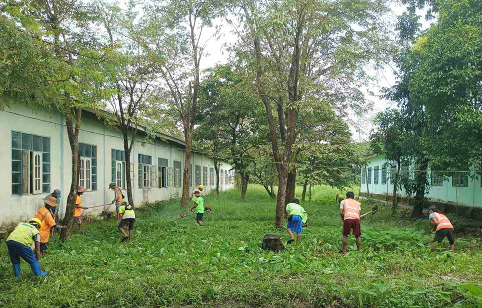 ၂၀၂၅-၂၀၂၆ ပညာသင်နှစ်တွင် ကျောင်းသား၊ ကျောင်းသူများ အဆင်ပြေ ချောမွေ့စွာ ပညာသင်ကြားနိုင်ရေးနှင့် စာသင်ကျောင်းများ ဥပဓိရုပ်ကောင်းမွန်စေရေး အတွက် ယနေ့တွင် ရန်ကုန်တိုင်းဒေသကြီး၊ မင်္ဂလာဒုံ မြို့နယ်အပါအဝင် မြို့နယ် ၁၄ မြို့နယ်တို့၌ နယ်မြေခံတပ်မတော်သားများ၊ ဌာနဆိုင်ရာဝန်ထမ်းများ၊ လူမှုရေးအသင်း အဖွဲ့များနှင့် ဒေသခံပြည်သူများက အခြေခံပညာကျောင်းများ အတွင်း/အပြင်ရှိ ချုံနွယ် ပေါင်းမြက်များ ခုတ်ထွင်ရှင်းလင်းခြင်း၊ အမှိုက်များ ရှင်းလင်းခြင်း၊ ရေစီးရေလာ ကောင်းမွန်စေရေး ရေနုတ်မြောင်းများ တူးဖော်ပေးခြင်း၊ ရေကန်များတွင် အဘိတ်ဆေး များခတ်ပေးခြင်း၊ ခြင်ခိုအောင်းနိုင်သည့် နေရာများအားခြင်ဆေးဖျန်းခြင်းနှင့် ကျန်းမာ ရေးအသိပညာပေး လက်ကမ်းစာစောင်များ ဖြန့်ဝေပေးခြင်းများကို စုပေါင်းဆောင်ရွက် ကြသည်။