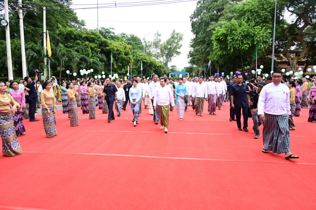 ထို့နောက် အခမ်းအနားအစီအစဉ်ပထမပိုင်းကိုစတင်ကျင်းပပြုလုပ်ရာ ကော်မရှင် အတွင်းရေးမှူး တွဲဖက်အမှုဆောင်ချုပ် ဗိုလ်ချုပ်ကြီး ရဲဝင်းဦး၊ ကော်မရှင်အဖွဲ့ဝင် ဒုတိယဗိုလ်ချုပ်ကြီး ရာပြည့်၊ သမ္မတရုံးဝန်ကြီးဌာန(၁) ပြည်ထောင်စုဝန်ကြီး ဦးတင်အောင်စန်း၊ ပညာရေးဝန်ကြီးဌာန ပြည်ထောင်စုဝန်ကြီး ဒေါက်တာ ချောချောစိန်၊ မန္တလေးတိုင်းဒေသကြီး ဝန်ကြီးချုပ် ဦးမျိုးအောင်တို့က အခမ်းအနားကို ဖဲကြိုးဖြတ် ဖွင့်လှစ်ပေးကြသည်။