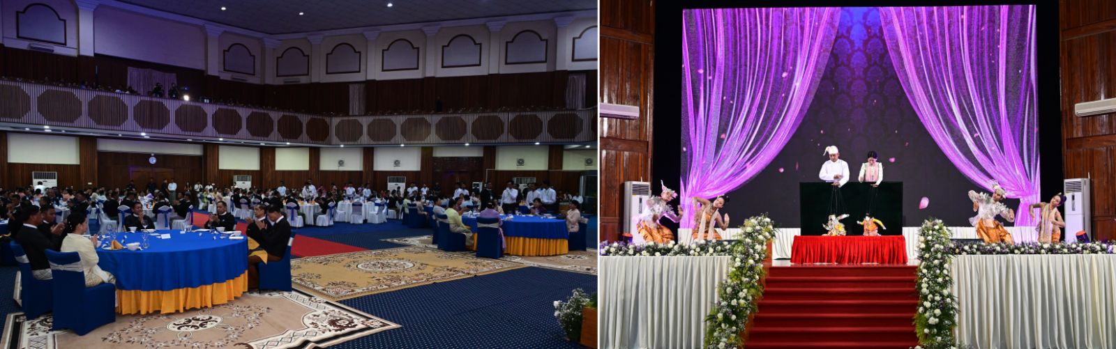 ဂုဏ်ပြုညစာ မသုံးဆောင်မီနှင့် သုံးဆောင်နေစဉ်အတွင်း မန္တလေး တက္ကသိုလ်၊ မန္တလေး အဝေးသင်တက္ကသိုလ်၊ မန္တလေးပညာရေးဒီဂရီကောလိပ်၊ မိတ္ထီလာပညာရေး ကောလိပ်တို့မှ ကျောင်းသား၊ ကျောင်းသူများ၊ ကျောင်းသား၊ ကျောင်းသူဟောင်းများ၊ သာသနာရေးနှင့်ယဉ်ကျေးမှုဝန်ကြီးဌာန အမျိုးသားယဉ်ကျေးမှုနှင့် အနုပညာတက္ကသိုလ် (မန္တလေး)မှ ကျောင်းသား၊ ကျောင်းသူများက တေးသံသာများ၊ အကအလှများဖြင့် သီဆိုကပြဖျော်ဖြေကြသည်။