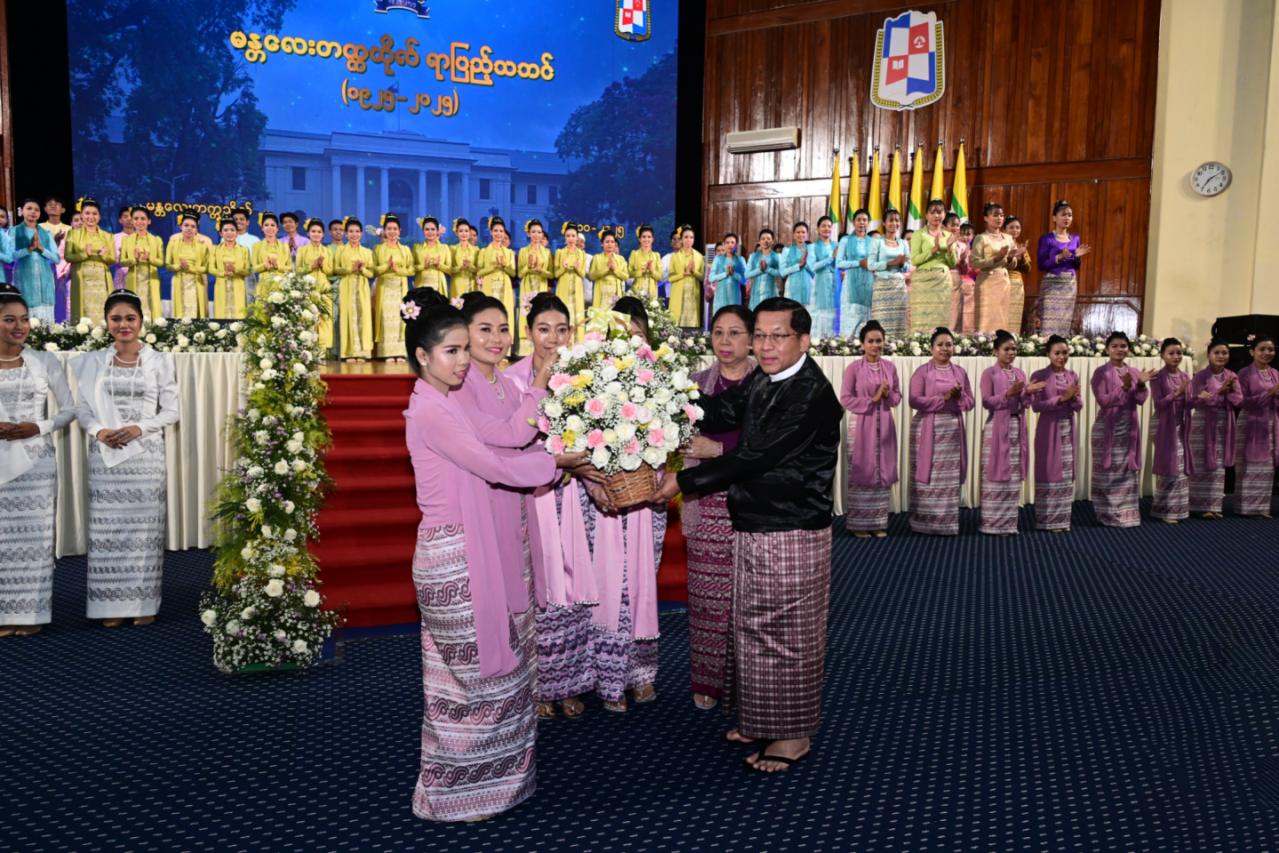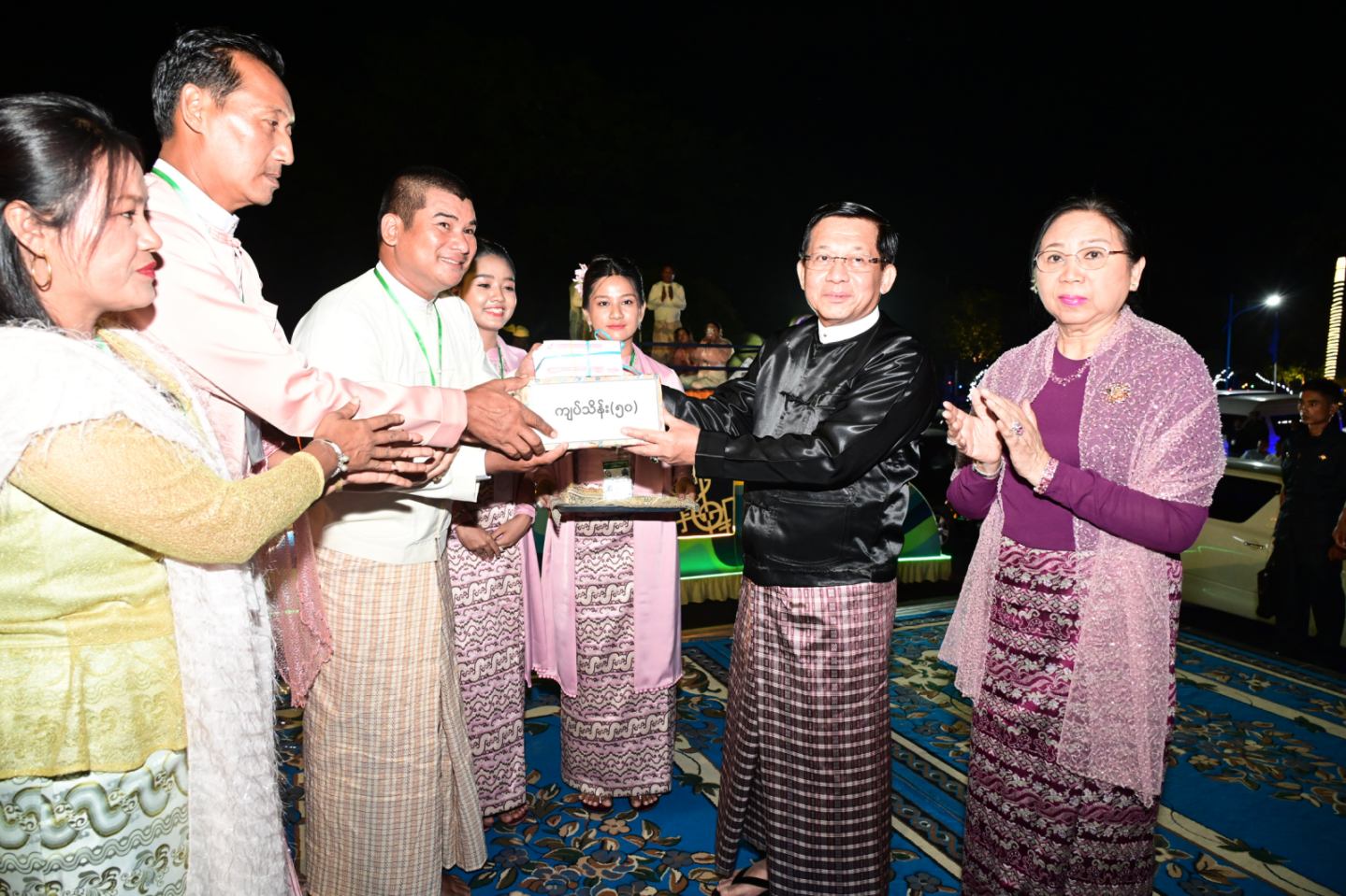 ထို့နောက် နိုင်ငံတော်ယာယီသမ္မတ နိုင်ငံတော်လုံခြုံရေးနှင့် အေးချမ်းသာယာရေး ကော်မရှင် ဥက္ကဋ္ဌ နှင့်ဇနီးနှင့် အဖွဲ့ဝင်များသည် မြို့မတေးဂီတအဖွဲ့၏ ဖျော်ဖြေတင် ဆက်မှုအား ကြည့်ရှုအားပေးကြပြီး သီဆိုတီးမှုတ်ဖျော်ဖြေခဲ့ကြသူများအား နိုင်ငံတော် ယာယီသမ္မတ နိုင်ငံတော်ခြုံရေးနှင့် အေးချမ်းသာယာရေးကော်မရှင် ဥက္ကဋ္ဌ နှင့်ဇနီးတို့က ဂုဏ်ပြုပန်းခြင်းနှင့် ဂုဏ်ပြုချီးမြှင့်ငွေများပေးအပ်ခဲ့ကြောင်း သတင်းရရှိသည်။