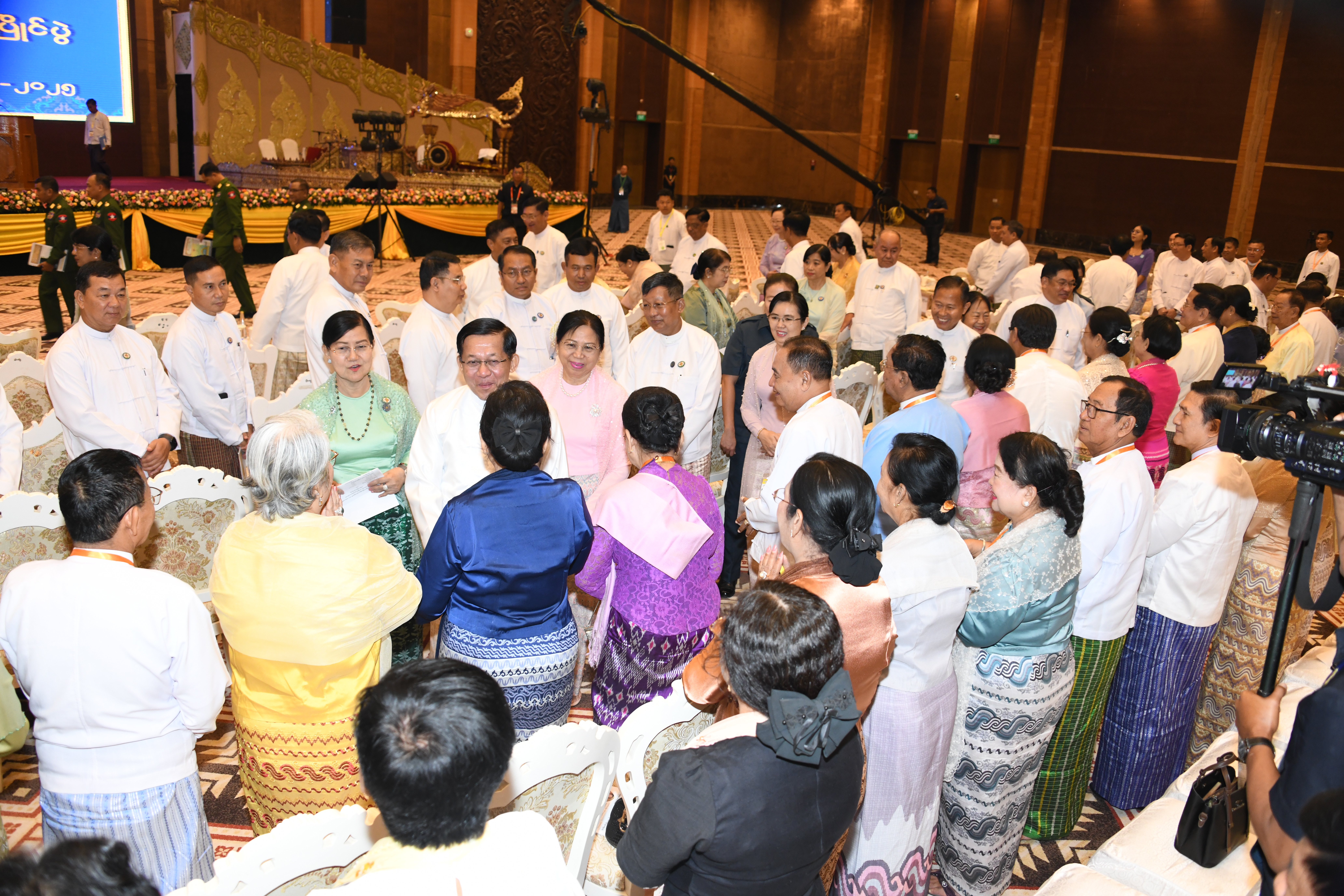အခမ်းအနားအပြီးတွင် နိုင်ငံတော်ယာယီသမ္မတ နိုင်ငံတော်လုံခြုံရေးနှင့် အေးချမ်းသာယာရေးကော်မရှင်ဥက္ကဋ္ဌနှင့် ဇနီး၊ အဖွဲ့ဝင်များသည် အကဲဖြတ် ပညာရှင်များကို ရင်းရင်းနှီးနှီး လိုက်လံနှုတ်ဆက်သည်။