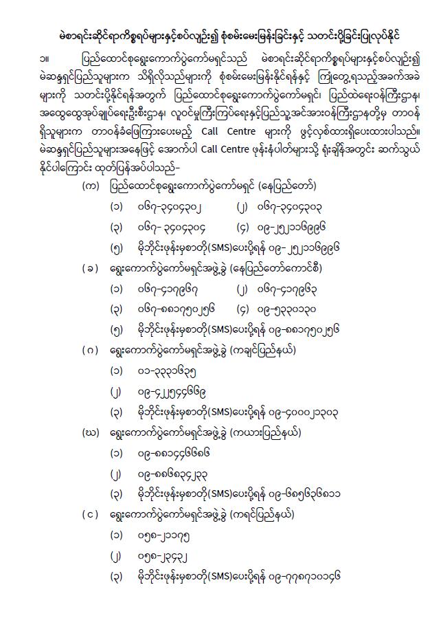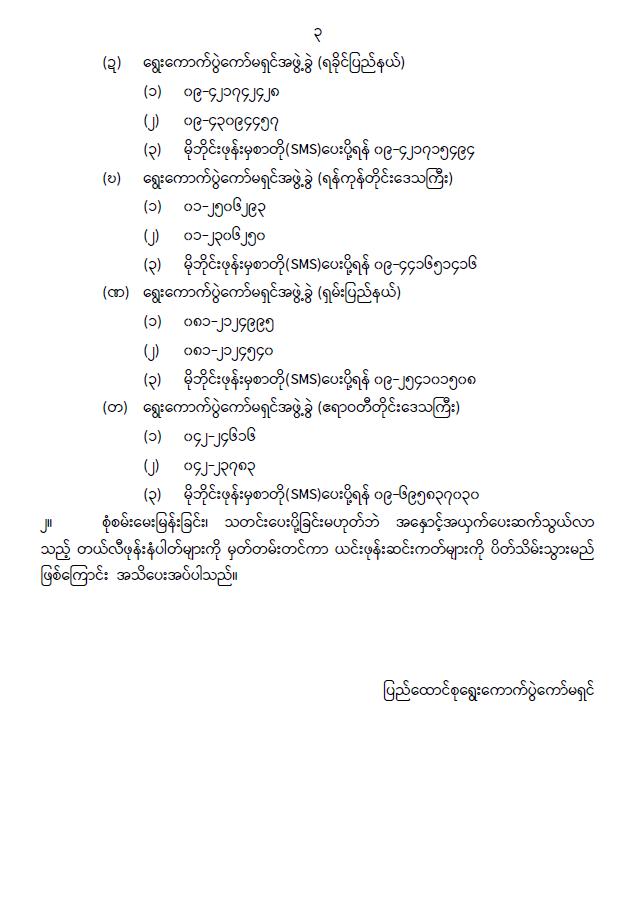 မဲစာရင်းဆိုင်ရာကိစ္စရပ်များနှင့်စပ်လျဉ်း၍ စုံစမ်းမေးမြန်းခြင်းနှင့် သတင်းပို့ခြင်းပြုလုပ်နိုင်