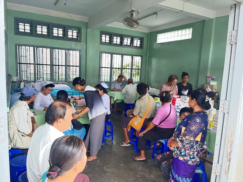 ထို့ပြင် ဒေသခံပြည်သူများ၏ ကျန်းမာရေးစောင့်ရှောက်မှုလုပ်ငန်းများ အတွက် ကျန်းမာရေးဝန်ကြီးဌာနနှင့် တပ်မတော်မှ ဆရာဝန်များ၊ သူနာပြုများ ပူးပေါင်း၍ ကျောက်မဲမြို့ လာဘမုနိတရုတ်ဘုံကျောင်း၌ ယာယီဆေးရုံဖွင့်လှစ်ကာ ဆေးကုသပေး ခြင်းများကို ဆောင်ရွက်ပေးလျက်ရှိရာ ယနေ့တွင် ပြင်ပလူနာ ၁၀၂ ဦးနှင့် ဆေးရုံ တက်ရောက် ကုသရန်လိုအပ်သော လူနာ ၃ ဦးတို့ကို လိုအပ်သည့် ကျန်းမာရေး စောင့်ရှောက်မှုလုပ်ငန်းများ ဆောင်ရွက်ပေးလျက်ရှိကြောင်း သတင်းရရှိသည်။