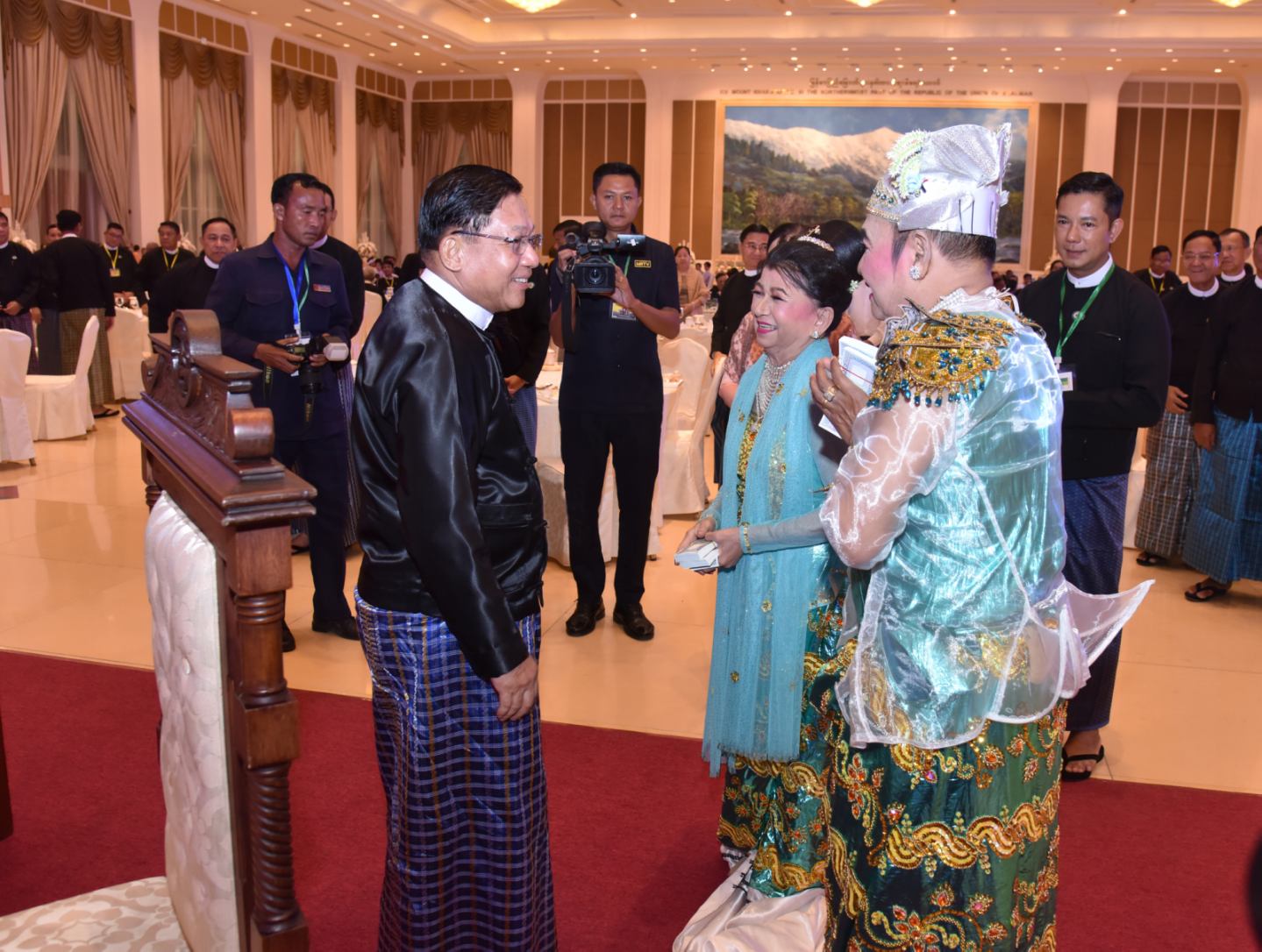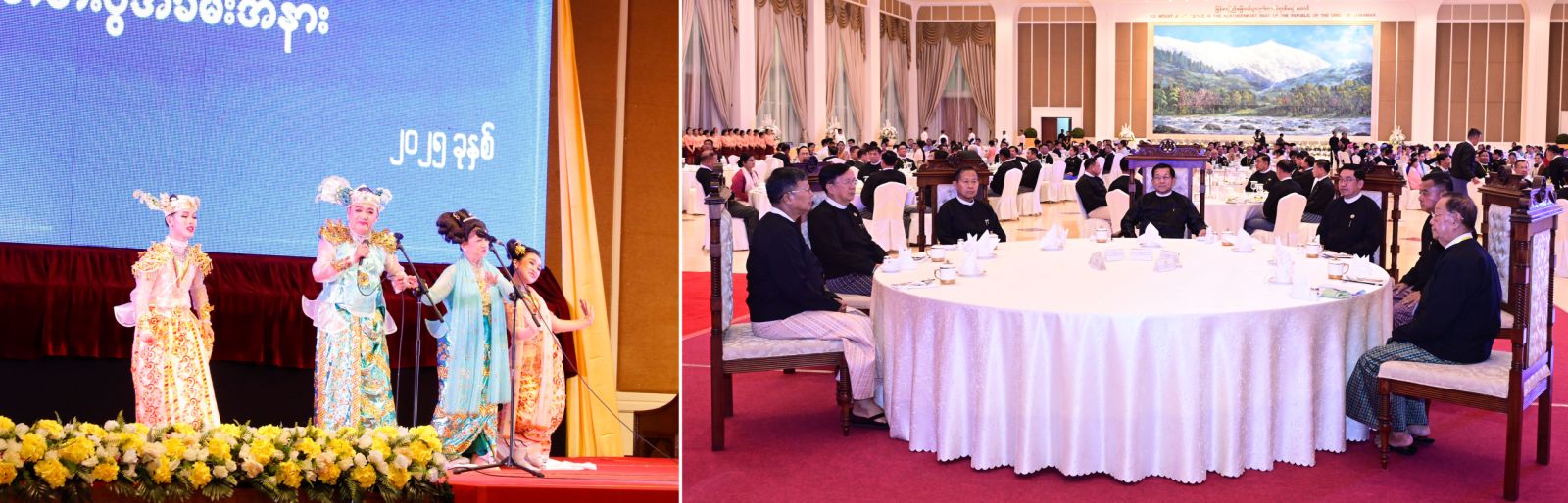 (၂၆)ကြိမ်မြောက် မြန်မာ့ရိုးရာယဉ်ကျေးမှု အဆို၊ အက၊ အရေး၊ အတီးပြိုင်ပွဲ ဂုဏ်ပြုမှတ်တမ်းလွှာပေးအပ်ပွဲနှင့် ဂုဏ်ပြုညစာစားပွဲ အခမ်းအနားကို ယနေ့ညနေပိုင်း တွင်နေပြည်တော်ရှိ ဇေယျာသီရိဗိမာန်၊ ရေခဲတောင်ခန်းမ၌ကျင်းပရာ ပြည်ထောင်စု သမ္မတ မြန်မာနိုင်ငံတော် ယာယီသမ္မတ နိုင်ငံတော်လုံခြုံရေးနှင့် အေးချမ်း သာယာရေး ကော်မရှင်ဥက္ကဋ္ဌ ဗိုလ်ချုပ်မှူးကြီး မင်းအောင်လှိုင် တက်ရောက်ချီးမြှင့်သည်။