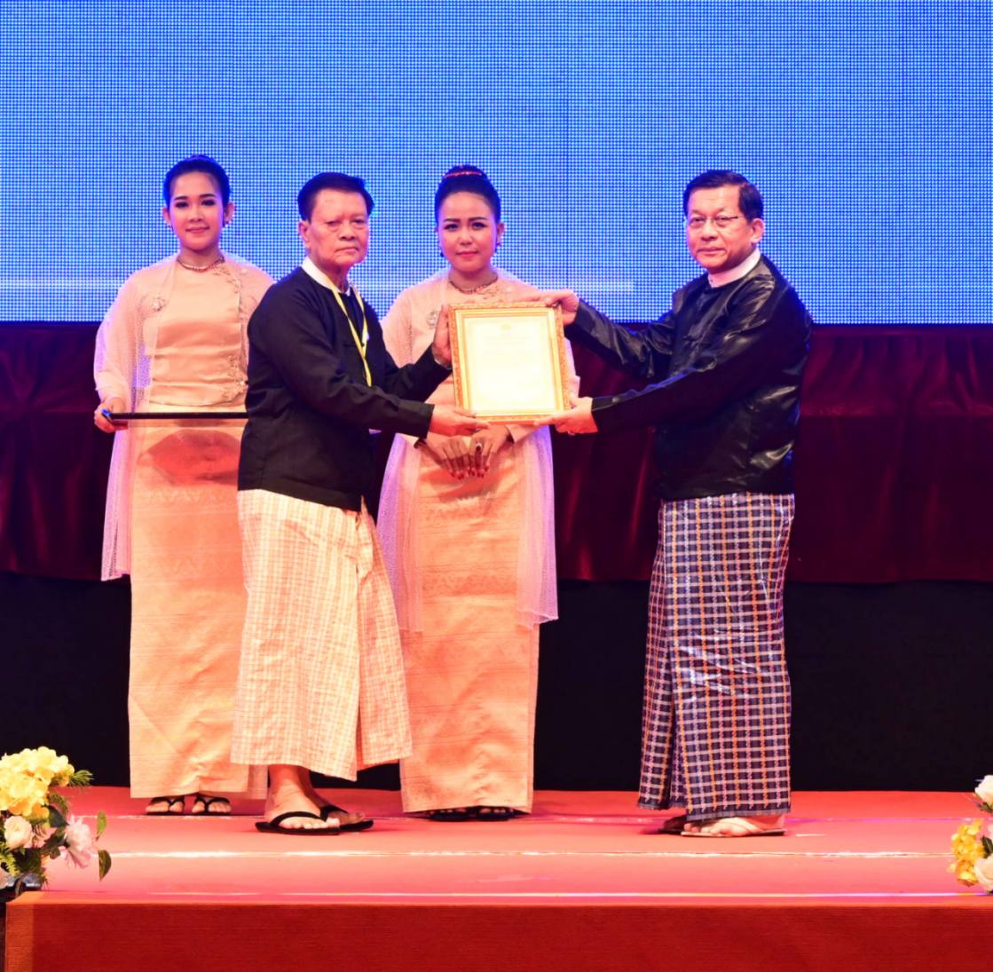 (၂၆)ကြိမ်မြောက် မြန်မာ့ရိုးရာယဉ်ကျေးမှု အဆို၊ အက၊ အရေး၊ အတီးပြိုင်ပွဲ ဂုဏ်ပြုမှတ်တမ်းလွှာပေးအပ်ပွဲနှင့်ဂုဏ်ပြုညစာစားပွဲ အခမ်းအနားကျင်းပ ပြည်ထောင်စုသမ္မတမြန်မာနိုင်ငံတော် ယာယီသမ္မတ နိုင်ငံတော်လုံခြုံရေးနှင့် အေးချမ်းသာယာရေးကော်မရှင်ဥက္ကဋ္ဌ ဗိုလ်ချုပ်မှူးကြီး မင်းအောင်လှိုင် တက်ရောက်ချီးမြှင့်