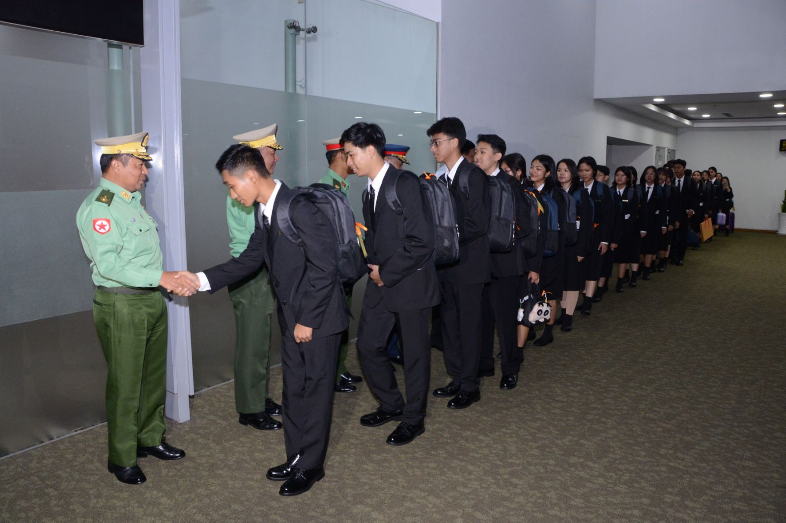 နိုင်ငံတော်လုံခြုံရေးနှင့် အေးချမ်းသာယာရေးကော်မရှင် ဥက္ကဋ္ဌ၊ တပ်မတော်ကာကွယ် ရေးဦးစီးချုပ်၏ လမ်းညွှန်မှုဖြင့် ၂၀၂၄-၂၀၂၅ ပညာသင်နှစ် တက္ကသိုလ်ဝင်စာမေးပွဲတွင် ထူးချွန်စွာအောင်မြင်ခဲ့ကြသည့် စစ်မှုထမ်းဆဲ/ စစ်မှုထမ်းဟောင်းနှင့် အစားခန့်ဝန်ထမ်းများ ၏ သား/သမီး ကျောင်းသား၊ ကျောင်းသူများနှင့် ဂုဏ်ထူးဖြင့်အောင်မြင်ခဲ့သောစစ်သည်များ ပါဝင်သည့် မျိုးဆက်သစ် ထူးချွန်လူငယ်မောင်မယ်များသည် နိုင်ငံတကာယဉ်ကျေးမှု၊ ဗဟုသုတနှင့် အသိပညာများအတုယူလေ့လာနိုင်စေရန်အတွက် တရုတ်ပြည်သူ့သမ္မတနိုင်ငံ သို့ လေ့လာရေးခရီးစဉ် သွားရောက်ကြမည်ဖြစ်ရာ အဆိုပါ လေ့လာရေးအဖွဲ့သည် ယနေ့ ညပိုင်းတွင် ရန်ကုန်အပြည်ပြည်ဆိုင်ရာလေဆိပ်မှ လေကြောင်းခရီး ဖြင့် ထွက်ခွာကြသည်။