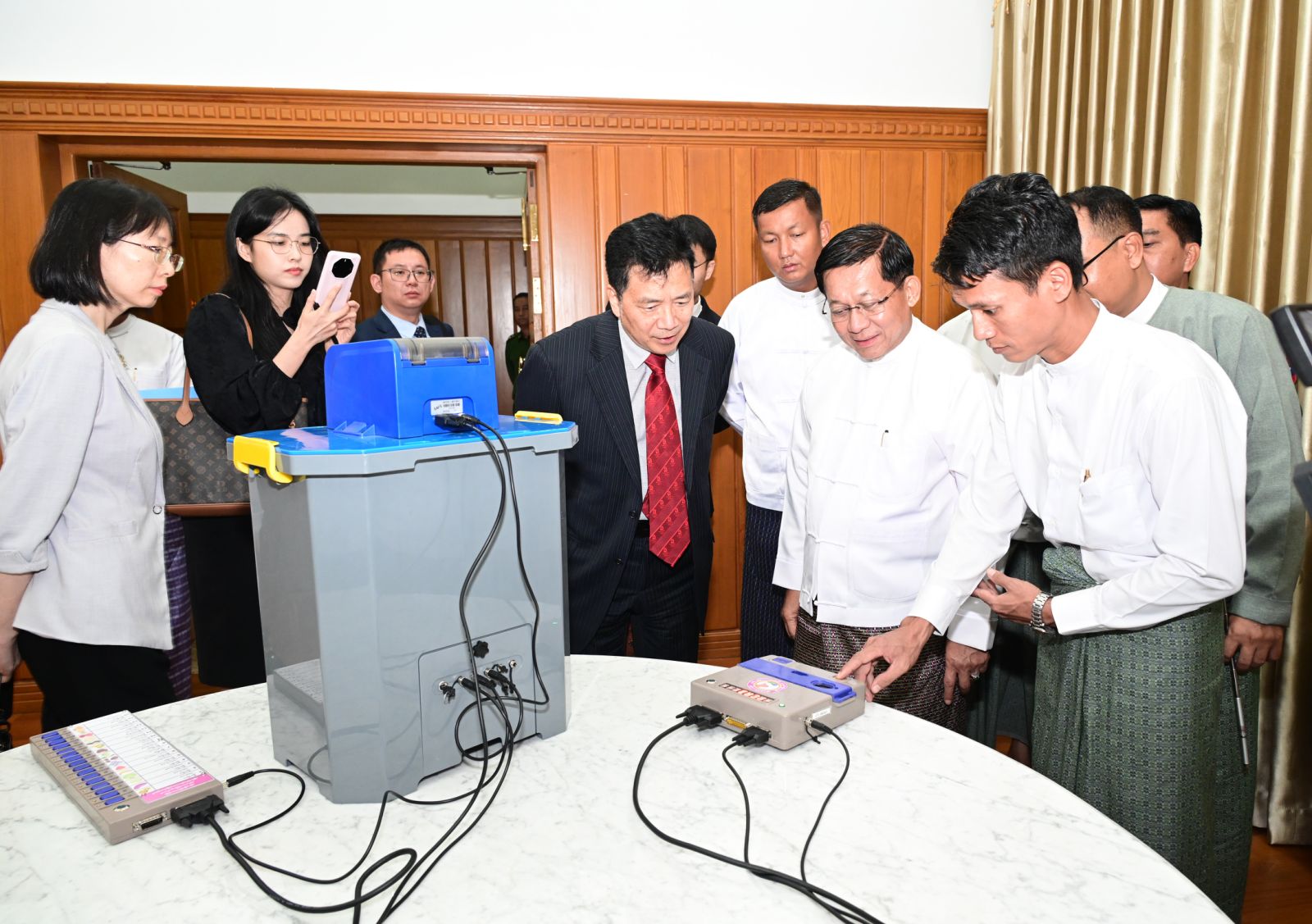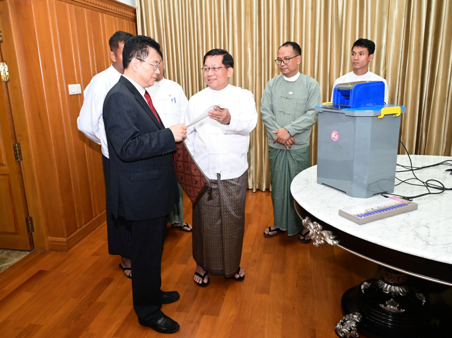 တွေ့ဆုံပွဲအပြီးတွင် နိုင်ငံတော်ယာယီသမ္မတ နိုင်ငံတော်လုံခြုံရေးနှင့် အေးချမ်း သာယာရေးကော်မရှင်ဥက္ကဋ္ဌ က တရုတ်နိုင်ငံခြားရေးဝန်ကြီးဌာန၊ အာရှရေးရာအထူး ကိုယ်စားလှယ်အား ရွေးကောက်ပွဲကျင်းပပြုလုပ်စဉ်အသုံးပြုမည့် မြန်မာအီလက် ထရောနစ်မဲပေးစက်(MEVM) စက်များအားပြသရာ ရွေးကောက်ပွဲကော်မရှင်မှ တာဝန် ရှိသူများ ကမဲပေးစက်၏ လုပ်ငန်းလုပ်ဆောင်မှု အဆင့်ဆင့်အား ရှင်းလင်းပြသခဲ့ပြီး တရုတ်နိုင်ငံ ခြားရေးဝန်ကြီးဌာန၊ အာရှရေးရာအထူး ကိုယ်စားလှယ်၏ သိရှိလိုသည့် မေးမြန်းမှု များကို ပြန်လည်ဖြေကြားခဲ့ကြောင်း သတင်းရရှိသည်။
