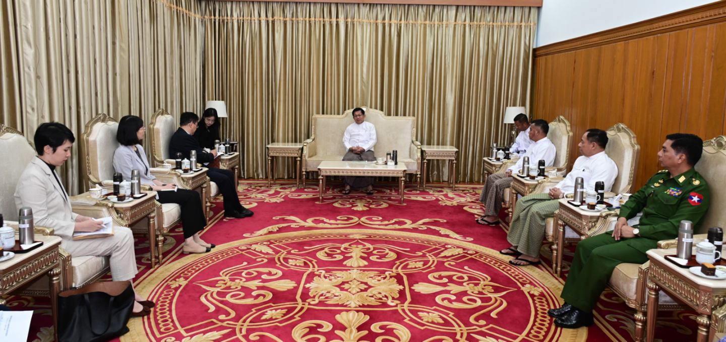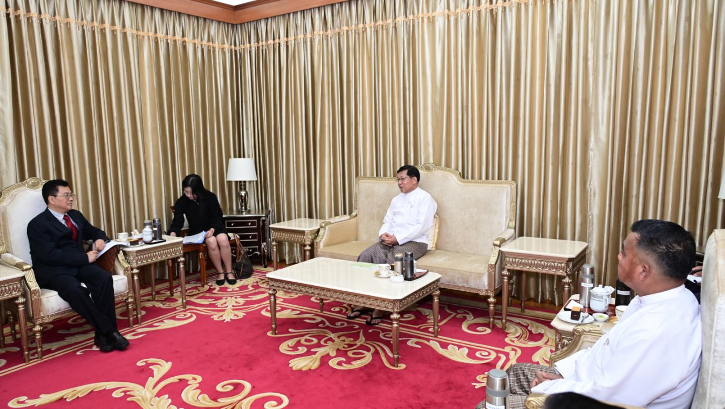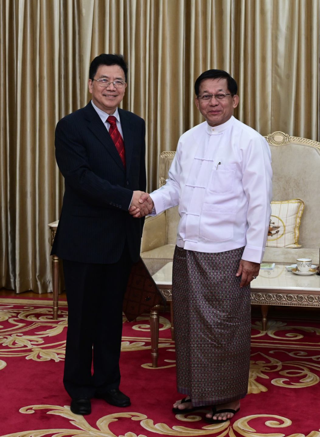 ပြည်ထောင်စုသမ္မတမြန်မာနိုင်ငံတော်ယာယီသမ္မတ နိုင်ငံတော်လုံခြုံရေးနှင့်အေးချမ်းသာယာရေးကော်မရှင်ဥက္ကဋ္ဌ ဗိုလ်ချုပ်မှူးကြီးမင်းအောင်လှိုင် ထံသို့ တရုတ်နိုင်ငံခြားရေးဝန်ကြီးဌာန အာရှရေးရာအထူးကိုယ်စားလှယ် ဦးဆောင်သည့် ကိုယ်စားလှယ်အဖွဲ့ လာရောက်ဂါရဝပြုတွေ့ဆုံ