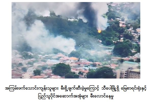 အလားတူ TNLA အကြမ်းဖက်အဖွဲ့နှင့် DPLA ၊ PDF အမည်ခံ အကြမ်းဖက် သောင်းကျန်းသူများအနေဖြင့် ရှမ်းပြည်နယ်(မြောက်ပိုင်း)၊ သီပေါမြို့နှင့် ၎င်းဒေသ တစ်ဝိုက်ကိုလည်း ခေတ္တစိုးမိုးပြီး အကြမ်းဖက်လုပ်ရပ်များကို လုပ်ဆောင်လျက်ရှိ သဖြင့် တပ်မတော်စစ်ကြောင်းများက သီပေါမြို့နှင့် ၎င်းဒေသတစ်ဝိုက်အား ပြန်လည် သိမ်းပိုက် ရရှိရေးအတွက် ဆောင်ရွက်လျက်ရှိရာ ယနေ့ညနေပိုင်းတွင် သီပေါမြို့အဝင် Toll Gate သို့ ရောက်ရှိစဉ် မြို့တွင်းမှ မီးခိုးလုံးများ တွေ့ရှိသဖြင့် မြို့တွင်းသို့ ဝင်ရောက် ရှင်းလင်းခဲ့ရာ အကြမ်းဖက်သောင်းကျန်းသူများ သည် သီပေါမြို့အတွင်းရှိ ဌာနဆိုင်ရာ အဆောက်အအုံများဖြစ်သည့် အကျဉ်းဦးစီးဌာန၊ အထွေထွေအုပ်ချုပ် ရေးမှူးရုံး၊ မြေစာရင်းရုံး၊ သီပေါဟိုတယ်အပါအဝင် အခြားဌာနဆိုင်ရာအဆောက် အအုံများနှင့် ပြည်သူလူထု၏ နေအိမ်များအား ရက်စက်ယုတ်မာစွာ မီးရှို့ ထွက်ပြေး သွားကြောင်း သိရှိရသည်။