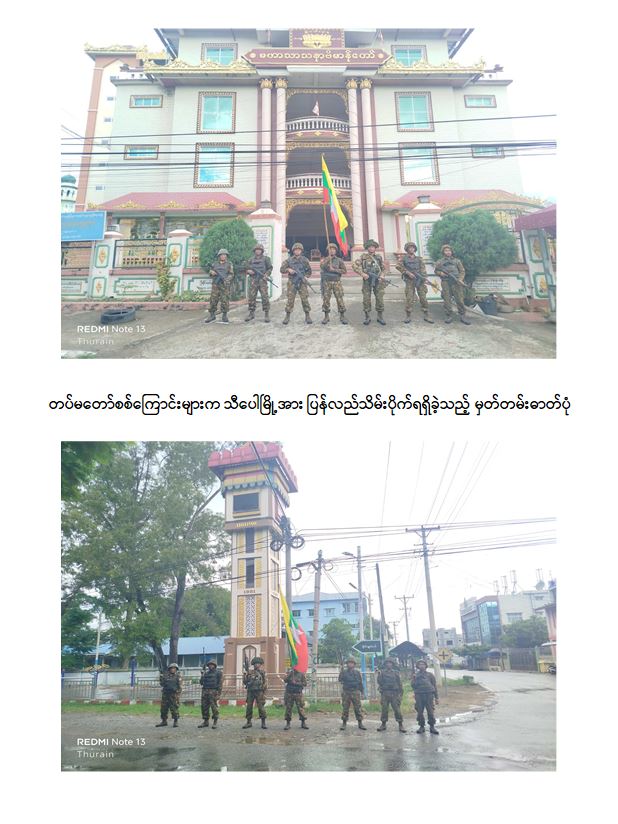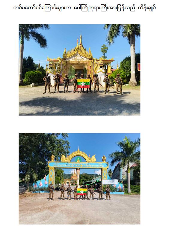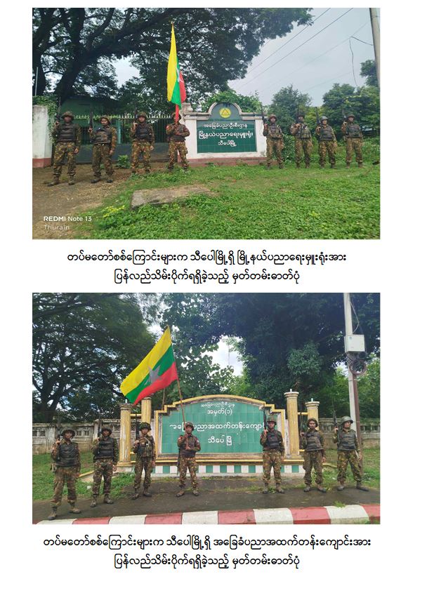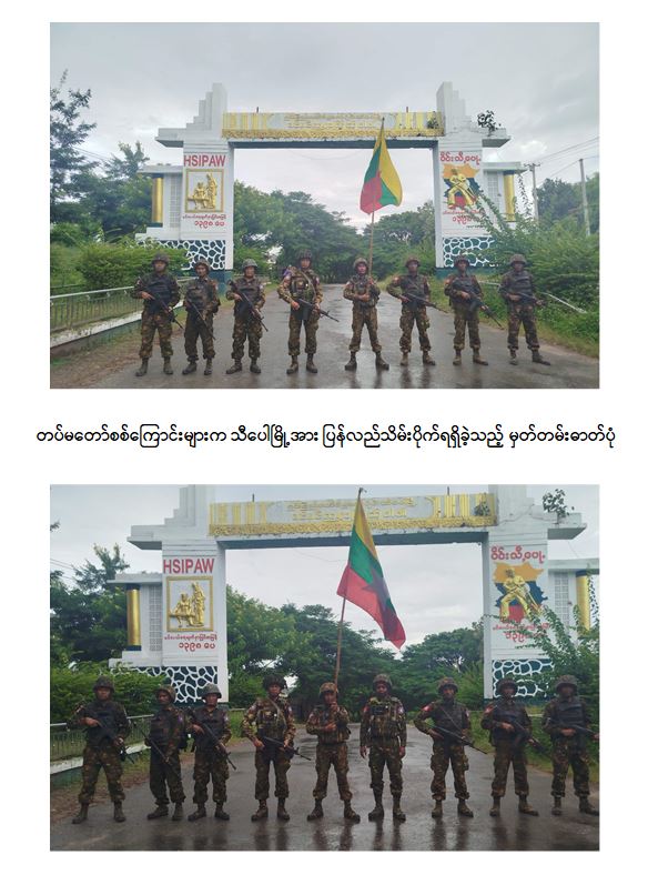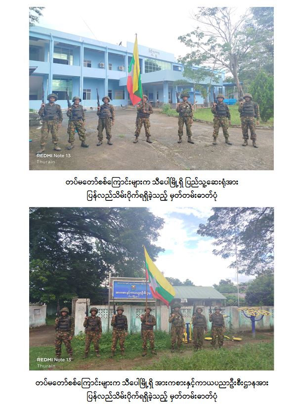 ထို့ပြင် တပ်မတော်စစ်ကြောင်းများ သီပေါမြို့အဝင် Toll Gate သို့ ရောက်ရှိစဉ် TNLA အကြမ်းဖက်သောင်းကျန်းသူများသည် သီပေါမြို့အတွင်းရှိ ဌာနဆိုင်ရာ အဆောက်အအုံများနှင့် ပြည်သူပိုင်အဆောက်အအုံများအား မီးရှို့ထွက်ပြေးသွားခဲ့သဖြင့် တပ်မတော်စစ်ကြောင်းက မြို့အတွင်းသို့ အလျင်အမြန် ဝင်ရောက်ရှင်းလင်း၍ အခြား အဆောက်အအုံများ မီးကူးစက်မှုမရှိစေရေး မီးငြိမ်းသက်ရေးလုပ်ငန်းများနှင့် မြို့တွင်း လုံခြုံရေးလုပ်ငန်းများ ကို ဆောင်ရွက်ခဲ့ရာ အောက်တိုဘာ ၁၆ ရက် ညနေပိုင်းတွင် သီပေါမြို့အား တပ်မတော်က အပြီးတိုင် ပြန်လည်ထိန်းချုပ်နိုင်ခဲ့သည်။ အလားတူ သီပေါမြို့အနီး ဝန်းကျင်သို့ ရောက်ရှိနေသည့် တပ်မတော်စစ်ကြောင်း အနေဖြင့်လည်း စိတ်ဓာတ်ကျဆင်းစွာ ဖရိုဖရဲဖြင့် သီပေါမြို့၏ မြောက်ဘက်သို့ ဆုတ်ခွာထွက်ပြေး လျက်ရှိသည့် အကြမ်းဖက်သောင်းကျန်းသူများအား ထပ်ကြပ် လိုက်လံ တိုက်ခိုက် ချေမှုန်းလျက် နယ်မြေစိုးမိုးရေးလုပ်ငန်းများ ဆောင်ရွက်လျက်ရှိ ကြောင်း သိရှိရသည်။