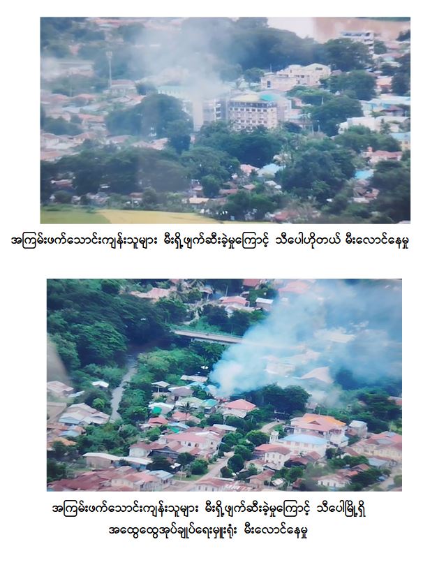 TNLA အကြမ်းဖက်သောင်းကျန်းသူများသည် သီပေါမြို့မှ ဆုတ်ခွာထွက်ပြေးစဉ် နောင်ချိုမြို့နှင့် ကျောက်မဲမြို့များတွင် လုပ်ဆောင်ခဲ့သည့် ၎င်းတို့၏ အကြမ်းဖက် လမ်းစဉ်နည်းလမ်းအတိုင်း လုပ်ဆောင်လျက်ရှိသည့် စစ်ရေးနှင့်သက်ဆိုင်ခြင်းမရှိသည့် သီပေါမြို့ရှိ အကျဉ်းဦးစီးဌာန၊ အထွေထွေအုပ်ချုပ် ရေးမှူးရုံး၊ မြေစာရင်းရုံး၊ သီပေါဟိုတယ် အပါအဝင် အခြားဌာနဆိုင်ရာ အဆောက်အအုံများနှင့် ပြည်သူလူထု၏ နေအိမ်များအား ရက်စက်ယုတ်မာရှိုင်းစိုင်းစွာ မီးရှို့ထွက်ပြေးသွားခဲ့ပြီး ၎င်းတို့ ခေတ္တထိန်းချုပ်စဉ်ကာလအတွင်း မြို့/ရွာများအတွင်းရှိ ဌာနဆိုင်ရာအဆောက်အအုံ များ၊ ဆေးရုံများနှင့်လူနေအိမ်များတွင် ဘန်ကာများဆောက်လုပ်ပြီး တပ်မတော် စစ်ကြောင်းများအား ပစ်ခတ်တိုက်ခိုက်ခြင်း၊ ဒေသခံပြည်သူများ၏ အိုးအိမ်များကို ခံစစ်တံတိုင်းအဖြစ် အကာအကွယ်ရယူ၍ ပစ်ခတ်တိုက်ခိုက်ခြင်းများကို လုပ်ဆောင် ခဲ့သည့်အပြင် ဒေသခံပြည်သူများ နေအိမ်များနှင့် ဈေးဆိုင်ခန်းများအား ဖောက်ထွင်း၍ တန်ဖိုးကြီးပစ္စည်းများ၊ စားသောက်ကုန်နှင့် အသုံးအဆောင်ပစ္စည်းများကို အဓမ္မ ယူဆောင်ခြင်းများ လုပ်ဆောင်ခဲ့သည်။