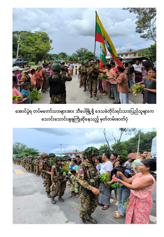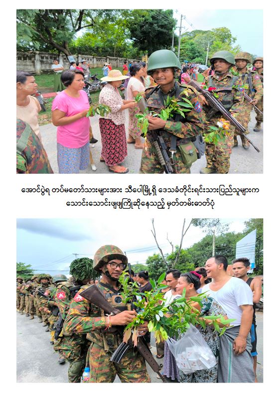 တပ်မတော်စစ်ကြောင်းများအနေဖြင့် နောင်ချိုမြို့နှင့် ကျောက်မဲမြို့တို့၌ ပြန်လည်ထူထောင်ရေးလုပ်ငန်းများ ဆောင်ရွက်ပေးသကဲ့သို့ပင် သီပေါမြို့မှ ယာယီ နေရပ်စွန့်ခွာနေကြရသည့် ဒေသခံတိုင်းရင်းသားမိဘပြည်သူများ ပြည်ဝင်ရောက်၍ အေးချမ်းစွာ လုပ်ကိုင်စားသောက်နေထိုင်နိုင်ရေး၊ အစိုးရအုပ်ချုပ်မှုယန္တရားများ ပြန်လည်လည်ပတ်နိုင်ရေး၊ ကျောင်းများ၊ ဆေးရုံ/ဆေးခန်းများ အမြန်ဆုံးဖွင့်လှစ်နိုင် ရေး ဆောင်ရွက်ပေးမည်ဖြစ်ရာ ပြည်သူလူထု၏ လူမှုဘဝ တိုးတက်မြင့်မားရေး လုပ်ငန်းများ ပြန်လည်ဆောင်ရွက်နိုင်တော့မည် ဖြစ်သည့်အတွက် ဒေသခံတိုင်းရင်း သားပြည်သူများအနေဖြင့် ဝမ်းမြောက်ပျော်ရွှင်လျက်ရှိသကဲ့သို့ပင် မြန်မာတစ်ပြည်လုံး ရှိ ပြည်သူများကလည်း ယခုကဲ့သို့ တပ်မတော်၏ အောင်မြင်မှုများအတွက် ထပ်တူ ဂုဏ်ယူဝမ်းမြောက်လျက်ရှိပြီး ရှေ့တန်းရောက်တပ်မတော်သားများအတွက် နိုင်ငံ တစ်ဝှမ်းရှိ စေတနာရှင်အလှူရှင်များက ဂုဏ်ပြုချီးမြှင့်ငွေများ၊ စားသောက်ဖွယ်ရာ များနှင့် အသုံးအဆောင်ပစ္စည်းများအား ပေးပို့လှူဒါန်းလျက်ရှိရာ သက်ဆိုင်ရာ တာဝန်ရှိသူများကလည်း ရှေ့တန်းရောက် တပ်မတော်သားများ၏ လက်ဝယ်အရောက် ပို့ဆောင်ပေးလျက်ရှိသည်။