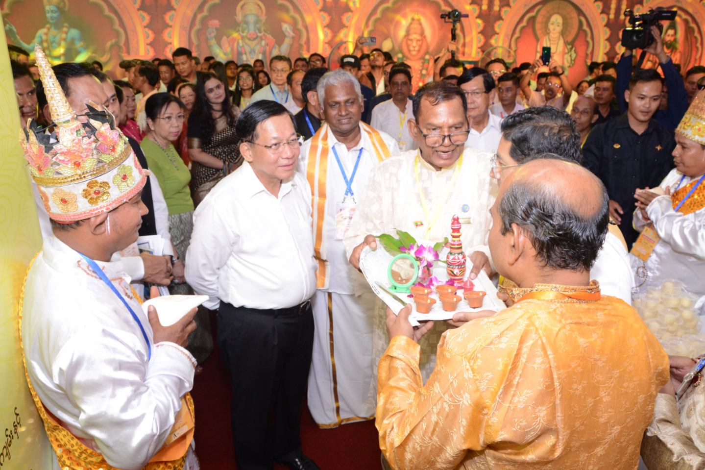 ထို့နောက်နိုင်ငံတော်ယာယီသမ္မတ နိုင်ငံတော်လုံခြုံရေးနှင့် အေးချမ်းသာယာရေး ကော်မရှင်ဥက္ကဋ္ဌ နှင့် ဇနီး၊ အခမ်းအနားတက်ရောက်လာကြသူများအား မြန်မာ- အိန္ဒိယ ရိုးရာယဉ်ကျေးမှုအကအဖွဲ့၊ ဟိန္ဒူရိုးရာ ယဉ်ကျေးမှုအကအဖွဲ့နှင့် အမျိုးသား ယဉ်ကျေးမှုနှင့် အနုပညာတက္ကသိုလ်(ရန်ကုန်)မှ ယဉ်ကျေးမှုအဖွဲ့များက ဟိန္ဒူရိုးရာ ယဉ်ကျေးမှု အကပဒေသာများ၊ လူမျိုးစုများ၏ ရိုးရာအကများ၊ မြန်မာရိုးရာအက များဖြင့် သီဆိုကပြဖျော်ဖြေကြသည်။ ဖျော်ဖြေမှုအပြီးတွင် နိုင်ငံတော်ယာယီသမ္မတ နိုင်ငံတော်လုံခြုံရေးနှင့် အေးချမ်းသာယာရေးကော်မရှင် ဥက္ကဋ္ဌ နှင့် ဇနီး၊ မြန်မာနိုင်ငံ ဆိုင်ရာ အိန္ဒိယနိုင်ငံသံရုံး သံရုံးယာယီတာဝန်ခံနှင့်ဇနီး တို့သည် ယဉ်ကျေးမှုအဖွဲ့များ အား အမှတ်တရ ဂုဏ်ပြုပန်းခြင်း ပေးအပ်ချီးမြှင့်ခဲ့ကြသည်။