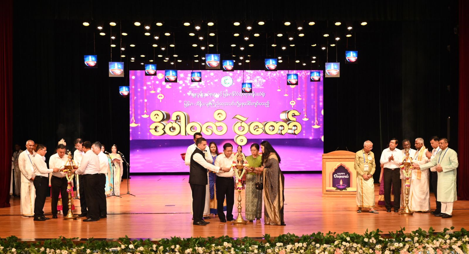 မြန်မာ-အိန္ဒိယ ချစ်ကြည်ရေးအသင်း(MIFA)နှင့် မြန်မာနိုင်ငံတွင်မှီတင်းနေထိုင် ကြသော ဟိန္ဒူမျိုးနွယ်စုများ စုပေါင်းကျင်းပသည့် ဒီပါဝလီအထိမ်းအမှတ် အခမ်း အနားကို ယနေ့ညနေပိုင်းတွင် ရန်ကုန်မြို့၊ ဒဂုံမြို့နယ်၊ မြို့မကျောင်းလမ်းရှိ အမျိုးသား ဇာတ်ရုံ၌ ကျင်းပပြုလုပ်ရာ ပြည်ထောင်စုသမ္မတမြန်မာနိုင်ငံတော် ယာယီသမ္မတ နိုင်ငံတော်လုံခြုံရေးနှင့်အေးချမ်းသာယာရေးကော်မရှင်ဥက္ကဋ္ဌ ဗိုလ်ချုပ်မှူးကြီး မင်းအောင်လှိုင် တက်ရောက် ချီးမြှင့်သည်။