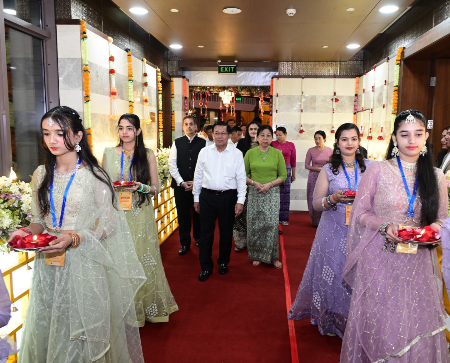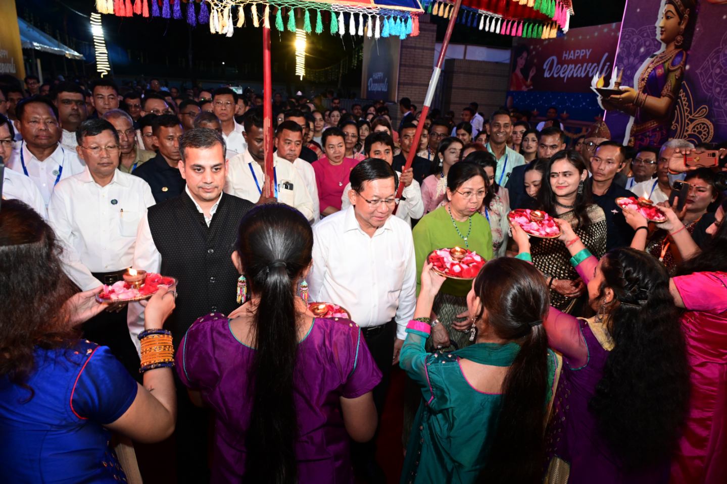 ထို့နောက်နိုင်ငံတော်ယာယီသမ္မတ နိုင်ငံတော်လုံခြုံရေးနှင့် အေးချမ်းသာယာရေး ကော်မရှင်ဥက္ကဋ္ဌနှင့် ဇနီး တို့အား ဟိန္ဒူရိုးရာ ဆီမီးနံ့သာဖြင့် ကြိုဆိုကြပြီး ဟိန္ဒူရိုးရာ တစ်ခုဖြစ်သည့် မွန်မြတ်ပြီးမင်္ဂလာရှိသော ဟိန္ဒူရိုးရ Pur Kumbham (ပုရ်ဏကုမ္ဘမ်) ဖြင့်ဆုတောင် ကြိုဆိုဂါရဝပြုကြသည်။ ယင်းနောက် နိုင်ငံတော်ယာယီသမ္မတ နိုင်ငံတော်လုံခြုံရေးနှင့် အေးချမ်းသာယာရေး ကော်မရှင်ဥက္ကဋ္ဌက ဒီပါဝလီအထိမ်း အမှတ်အခမ်းအနားကို စက်ခလုပ်နှိပ်ဖွင့်လှစ်ပေးပြီး တက်ရောက်လာကြသူများနှင့် အတူ စုပေါင်းမှတ်တမ်းတင်ဓာတ်ပုံရိုက်သည်။