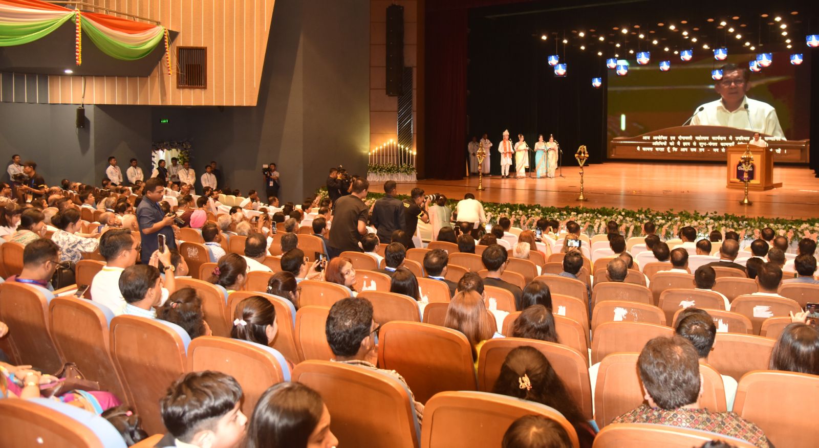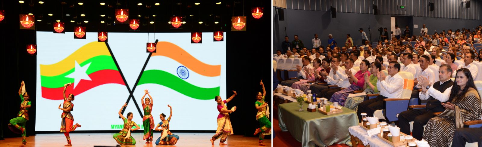 ထို့နောက် အခမ်းအနားအစီအစဉ်ဒုတိယပိုင်းကို ပြဇာတ်ခန်းမ၌ ကျင်းပပြုလုပ် ရာ နိုင်ငံတော်ယာယီသမ္မတ နိုင်ငံတော်လုံခြုံရေးနှင့် အေးချမ်းသာယာရေးကော်မရှင် ဥက္ကဋ္ဌနှင့် ဇနီး၊ မြန်မာနိုင်ငံဆိုင်ရာ အိန္ဒိယနိုင်ငံသံရုံး သံရုံးယာယီတာဝန်ခံနှင့်ဇနီး၊ တာဝန်ရှိသူများက ဒီပါဝလီအထိမ်းအမှတ် ဆီမီးထွန်းညှိပေးကြသည်။ ယင်းနောက် နိုင်ငံတော်ယာယီသမ္မတ နိုင်ငံတော်လုံခြုံရေးနှင့် အေးချမ်းသာယာရေးကော်မရှင် ဥက္ကဋ္ဌနှင့် ဇနီးတို့အား မြန်မာနိုင်ငံဆိုင်ရာ အိန္ဒိယနိုင်ငံသံရုံး သံရုံးယာယီတာဝန်ခံနှင့် ဇနီးတို့က မင်္ဂလာဂုဏ်ပြုပုဝါနှင့် ပန်းကုံးကို ဂါရဝပြုဆင်မြန်းပေးပြီး နိုင်ငံတော်လုံခြုံ ရေးနှင့် အေးချမ်းသာယာရေး ကော်မရှင်ဥက္ကဋ္ဌနှင့် မြန်မာနိုင်ငံဆိုင်ရာ အိန္ဒိယနိုင်ငံ သံရုံး သံရုံးယာယီတာဝန်ခံတို့သည် အမှတ်တရလက်ဆောင်ပစ္စည်းများ အပြန်အလှန် ပေးအပ်ကြကာ စုပေါင်းမှတ်တမ်းတင်ဓာတ်ပုံ ရိုက်ကြသည်။