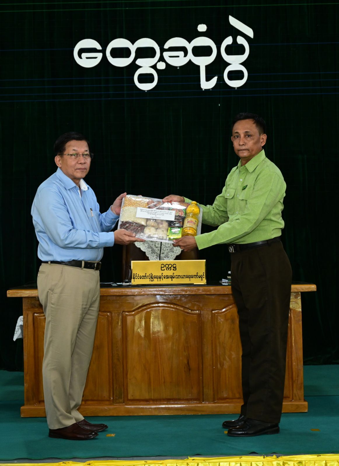 ထို့နောက် နိုင်ငံတော်ယာယီသမ္မတ နိုင်ငံတော်လုံခြုံရေးနှင့်အေးချမ်း သာယာ ရေးကော်မရှင်ဥက္ကဋ္ဌ က ကိုကိုးကျွန်းမြို့ရှိ ဒေသခံပြည်သူများ၊ ဌာနဆိုင်ရာဝန်ထမ်း များအတွက် စားသောက်ဖွယ်ရာများကို လည်းကောင်း၊ ကိုကိုးကျွန်းမြို့အထက်တန်း ကျောင်းအတွက် စာရေးကိရိယာများကိုလည်းကောင်း ပေးအပ်ရာ မြို့နယ်အုပ်ချုပ် ရေးမှူးနှင့် ကိုကိုးကျွန်းမြို့နယ်အထက်တန်းကျောင်းအုပ်ဆရာမကြီးက လက်ခံရယူ သည်။