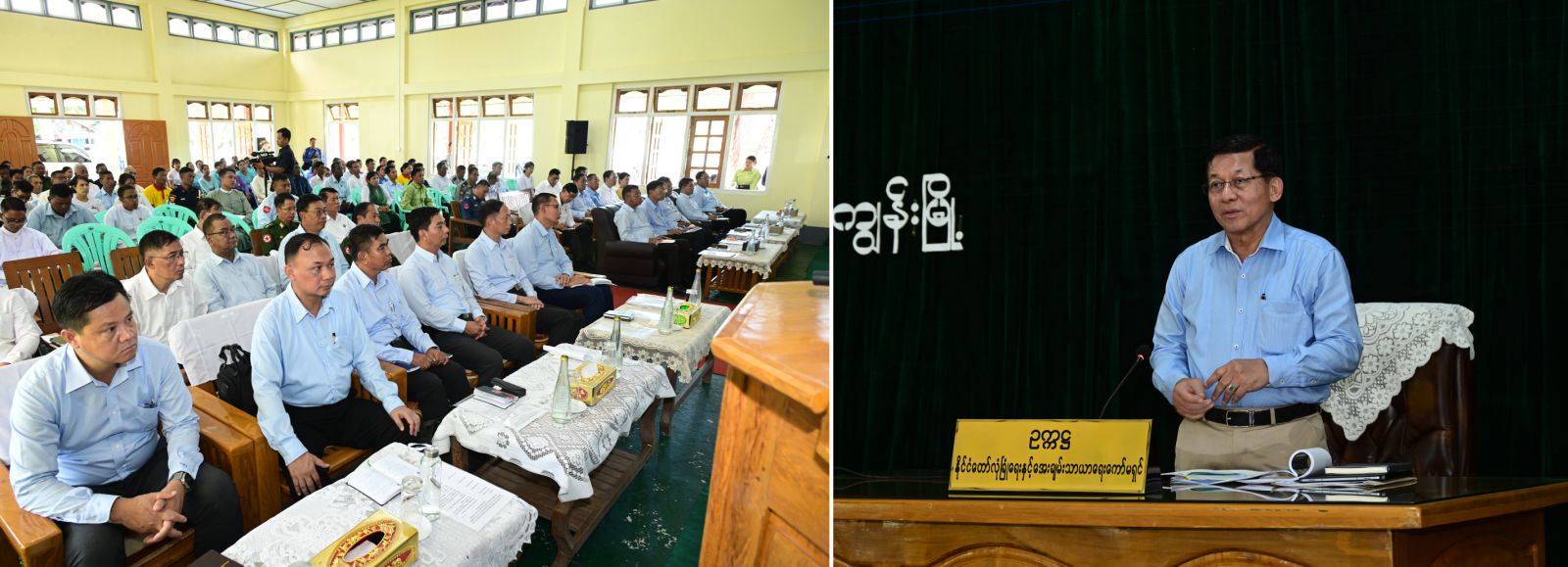 ထို့နောက် နိုင်ငံတော်ယာယီသမ္မတ နိုင်ငံတော်လုံခြုံရေးနှင့် အေးချမ်းသာယာ ရေးကော်မရှင် ဥက္ကဋ္ဌသည် ကိုကိုးကျွန်းမြို့ရှိ ဌာနဆိုင်ရာတာဝန်ရှိသူများ နှင့်ရပ်မိရပ်ဖ များအား မြို့နယ်ခန်းမ၌တွေ့ဆုံ၍ ဒေသဖွံ့ဖြိုးတိုးတက်ရေးဆိုင်ရာများအား ဆွေးနွေး ပြောကြားသည်။